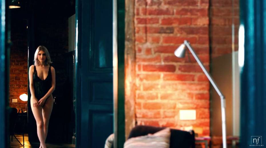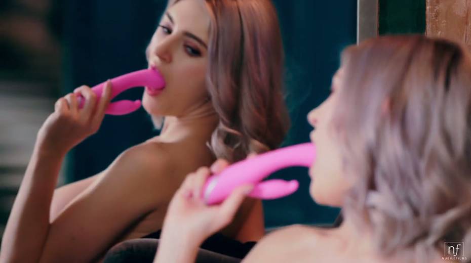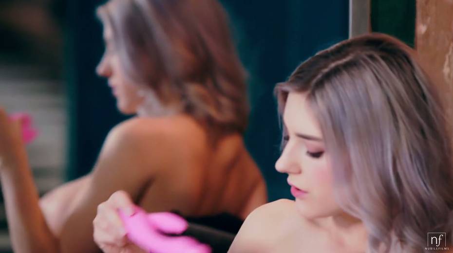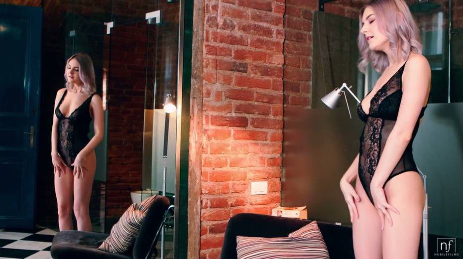 Voluptuous blonde with big boobs Eva Elfie masturbates in front of the mirror