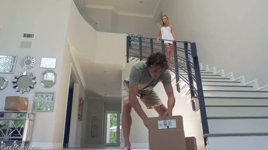 Sex-starved housewife Brett Rossi seduces 19 yo delivery boy and rides his cock