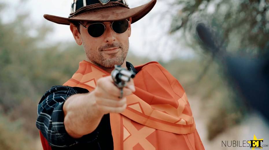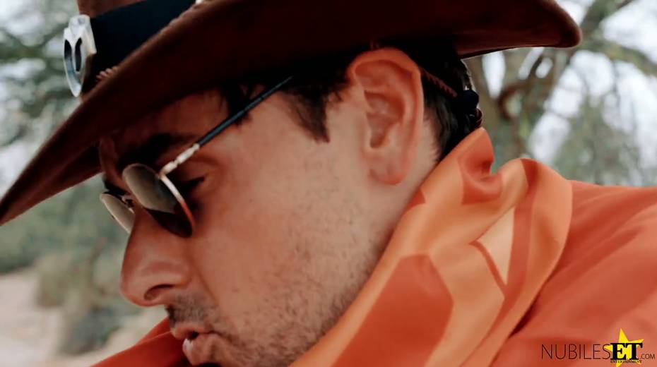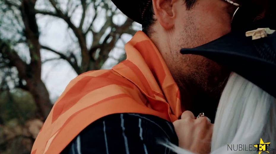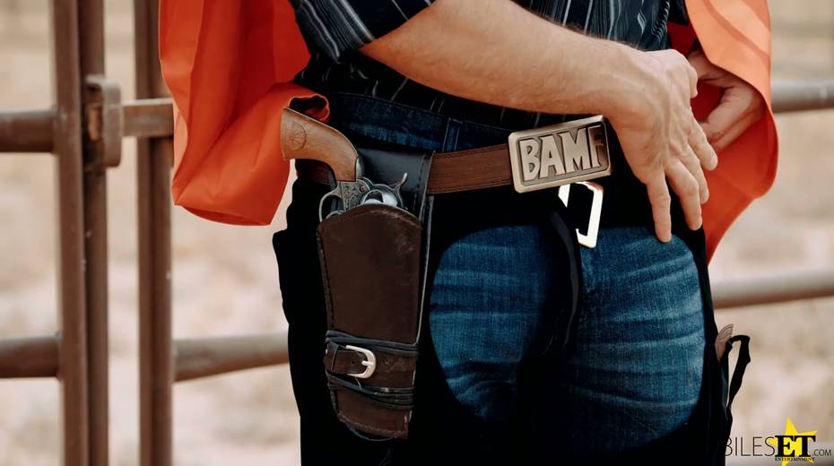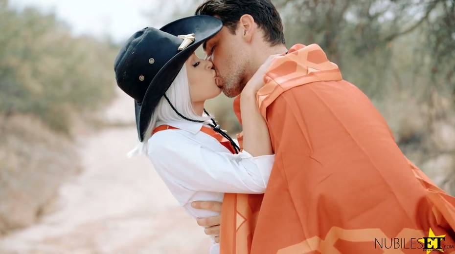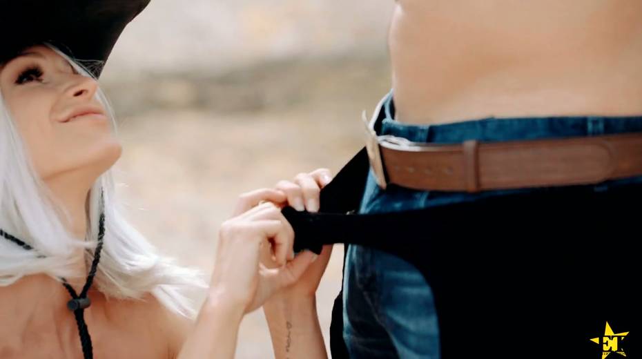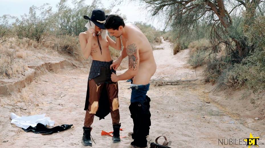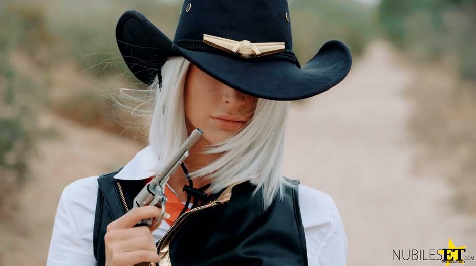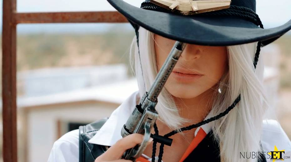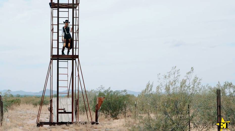 Gorgeous blond cowgirl Emma Hixgets her pussy nailed on the prairie