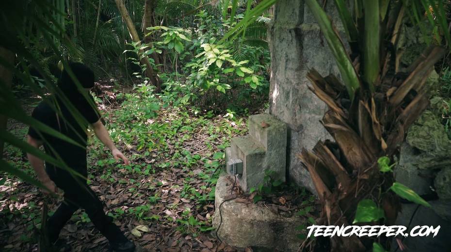 Dude in black mask fucks masturbating in the garden babe Raylin Ann