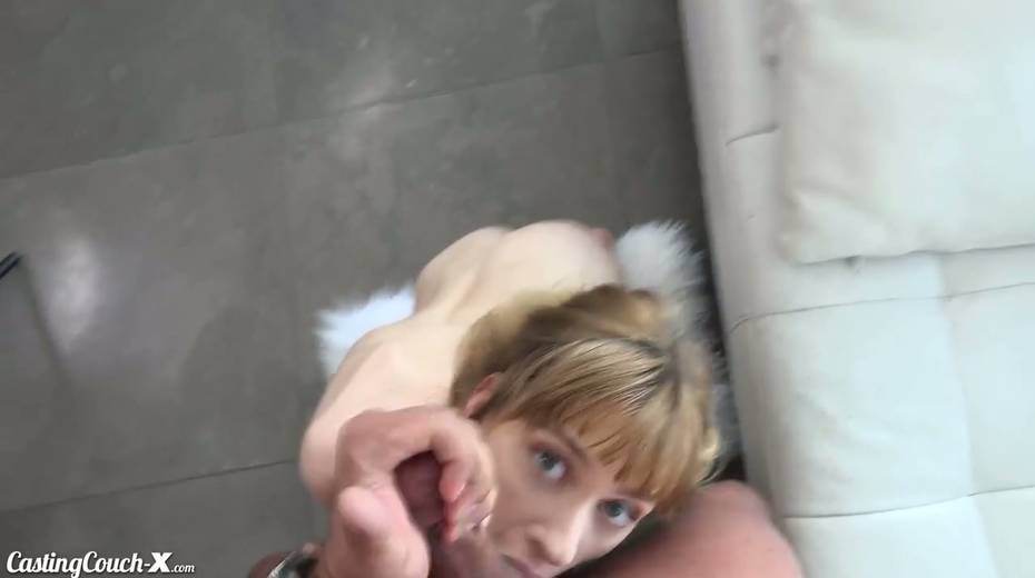 Well endowed dude fucks super skinny chick Chanel Shortcake and cums in her mouth