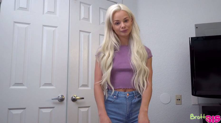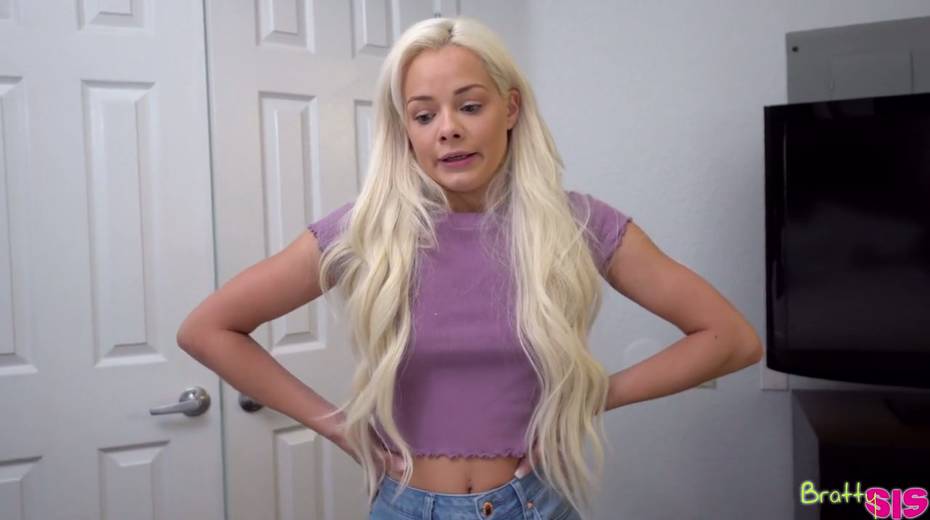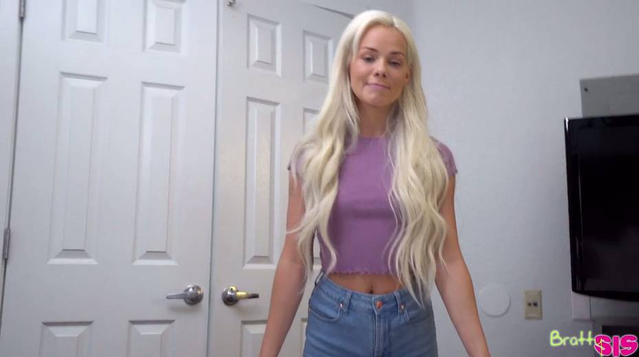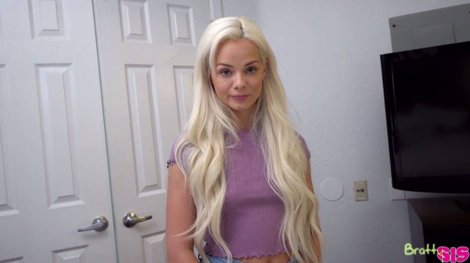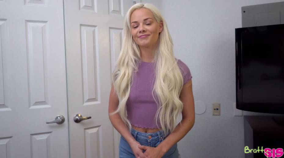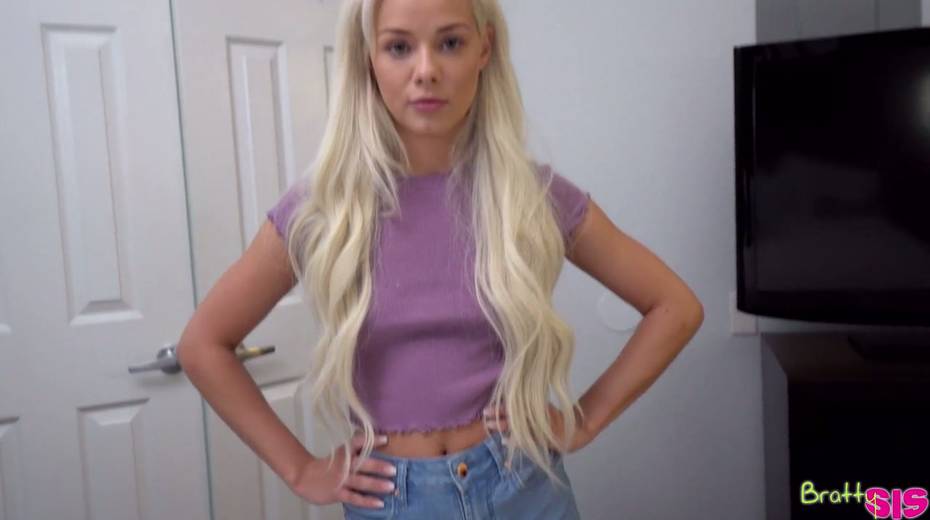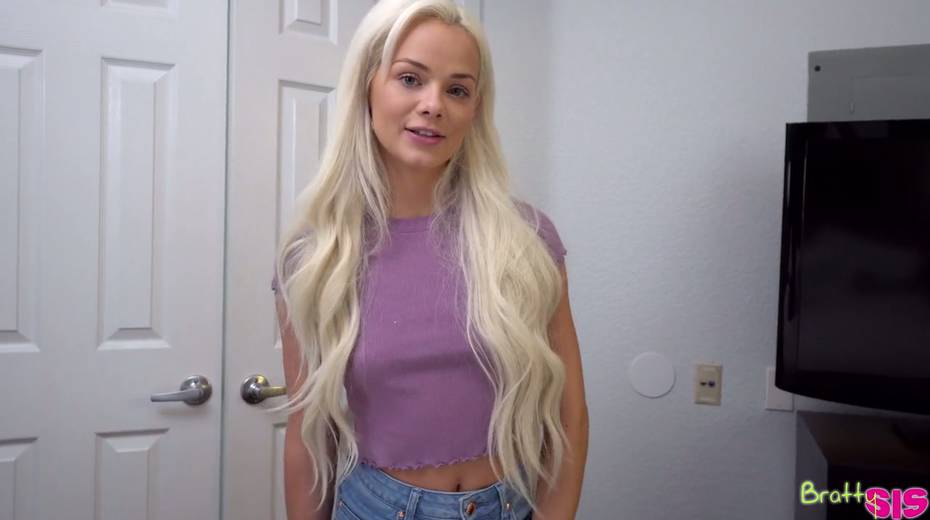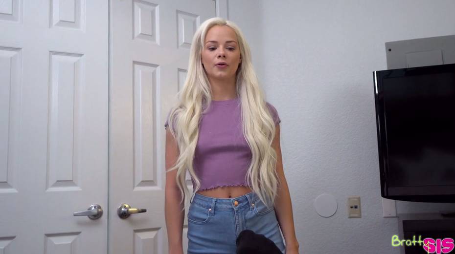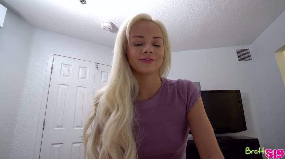 Naughty petite blonde Elsa Jean gives a tugjob to her horny stepbrother