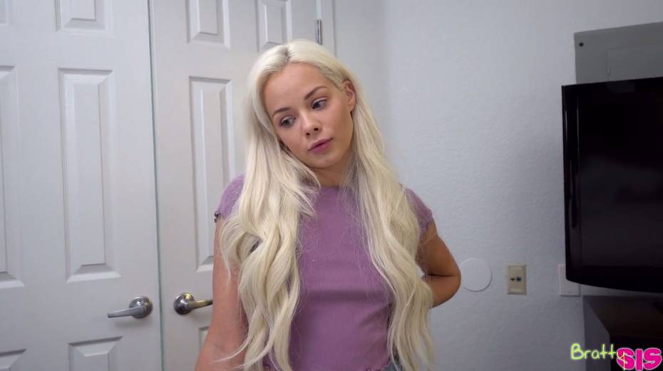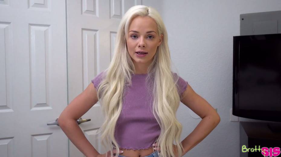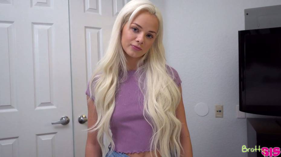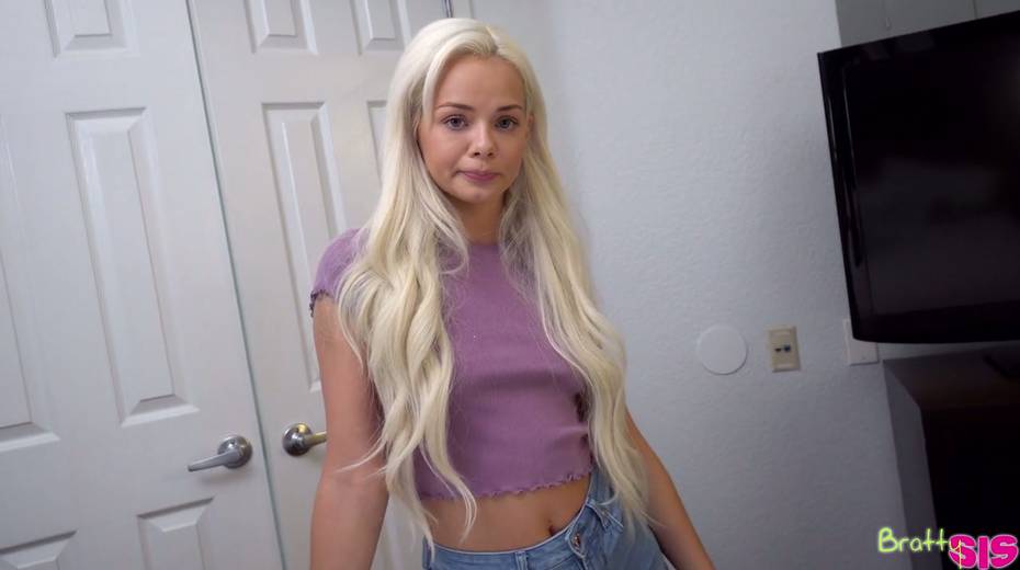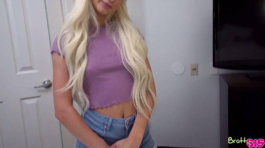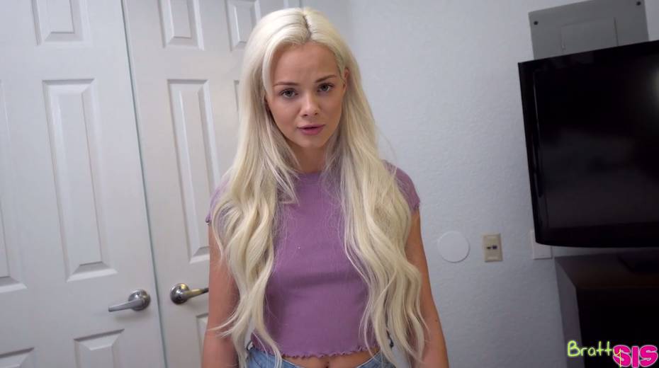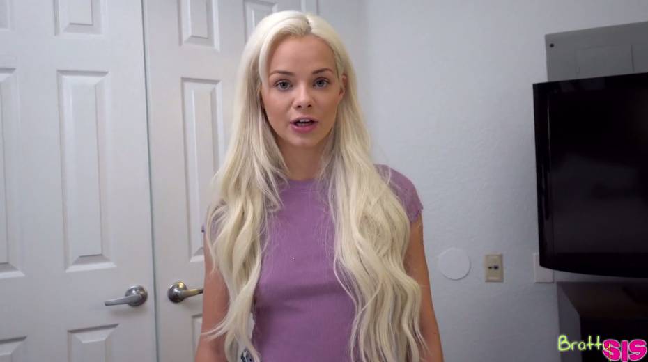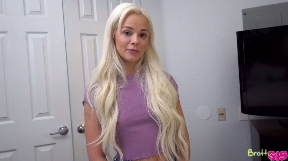 Naughty petite blonde Elsa Jean gives a tugjob to her horny stepbrother