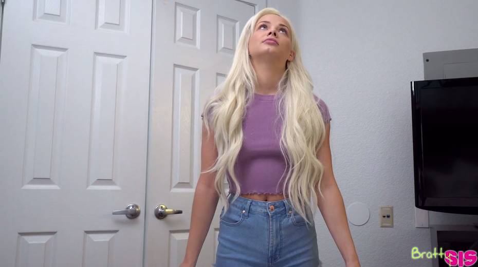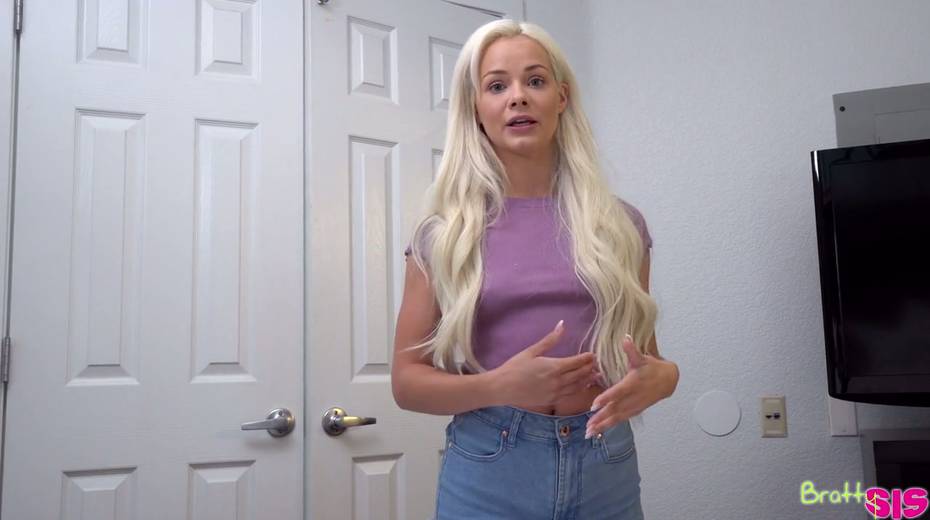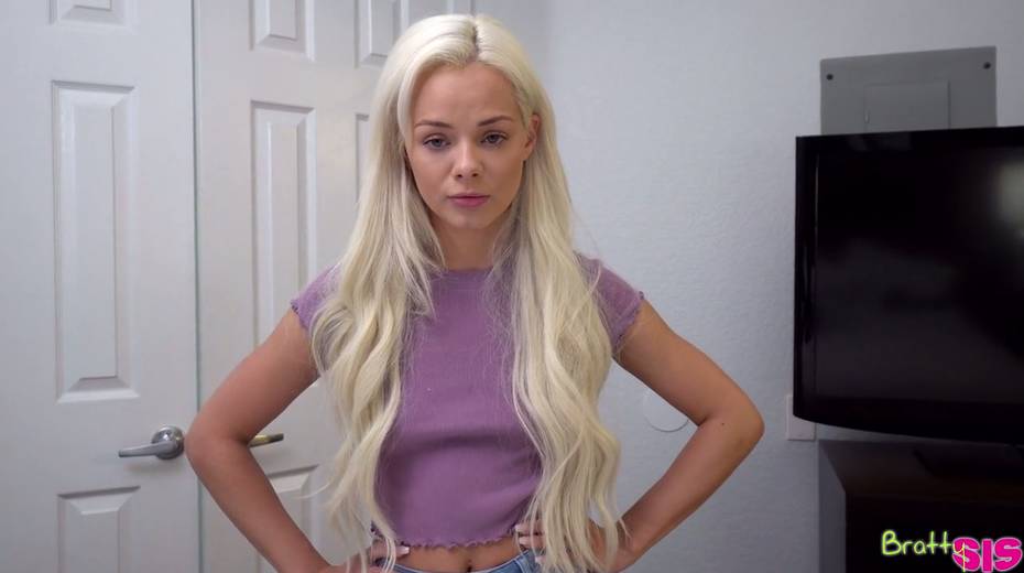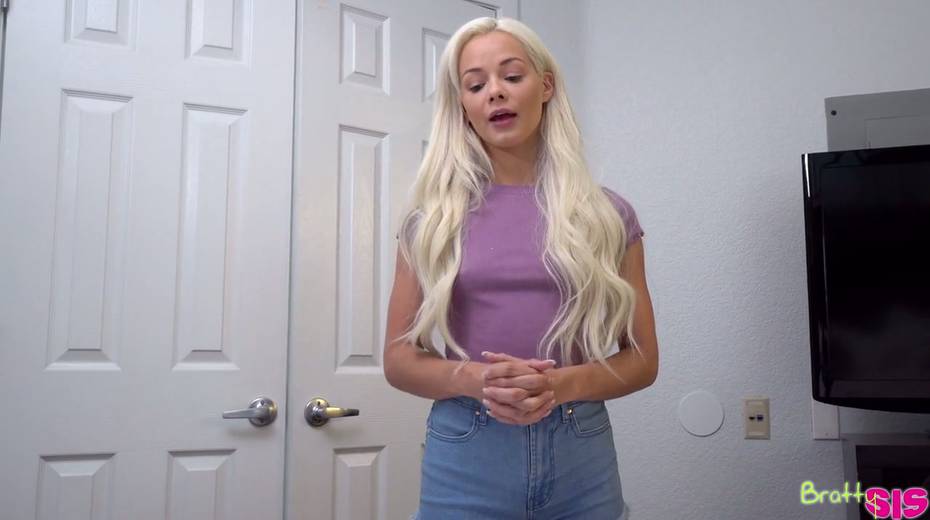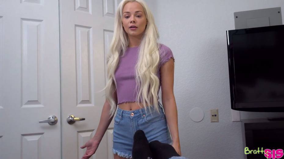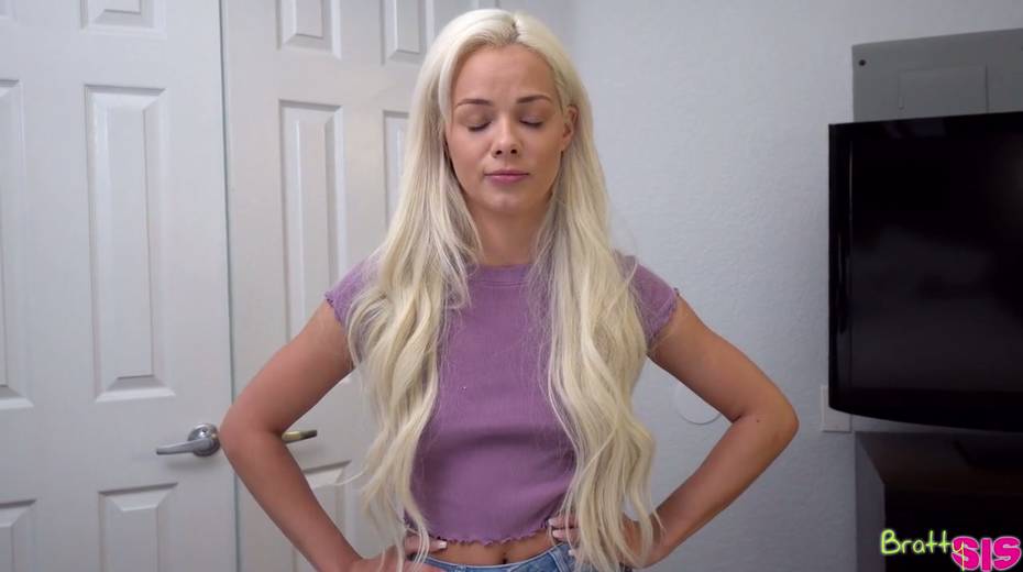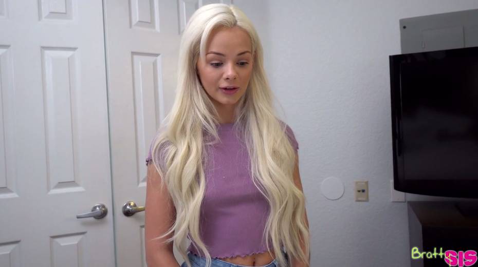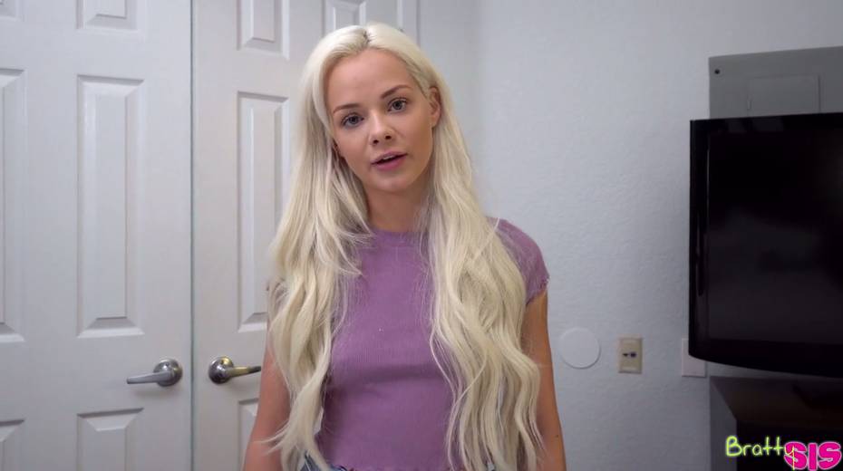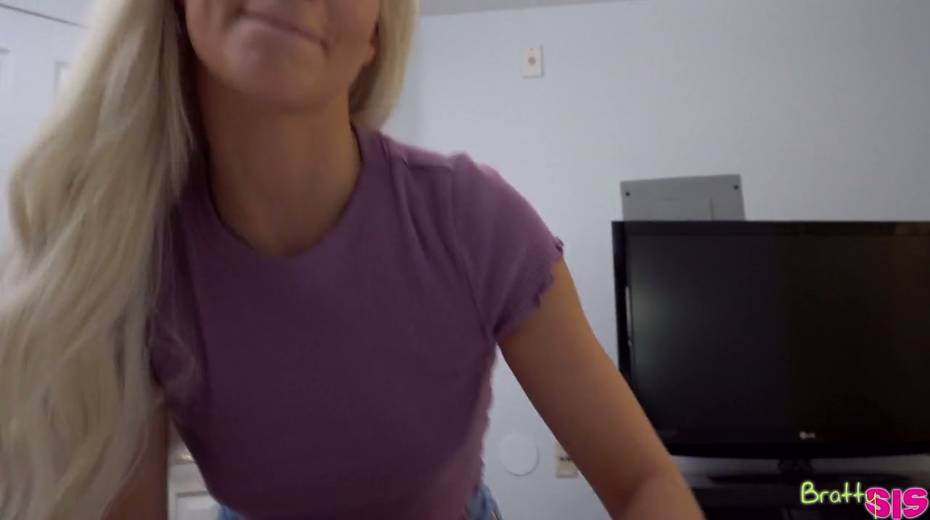 Naughty petite blonde Elsa Jean gives a tugjob to her horny stepbrother