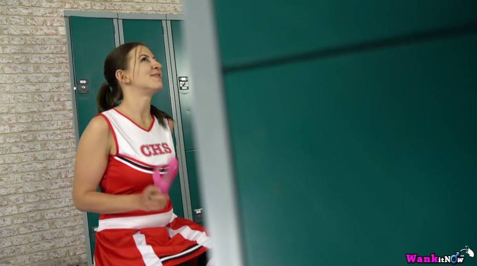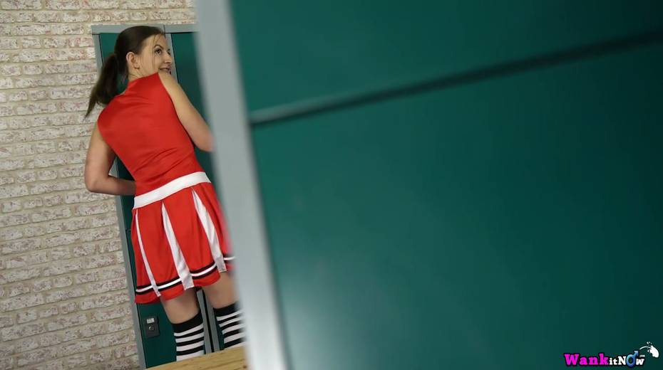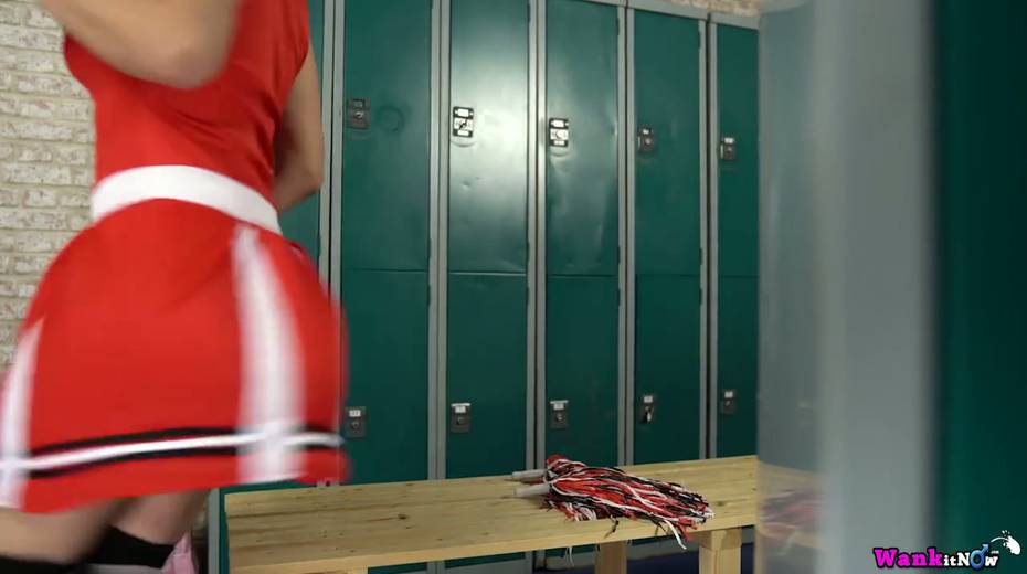 Lustful cheerleader Tindra Frost is toying her snatch in the locker room