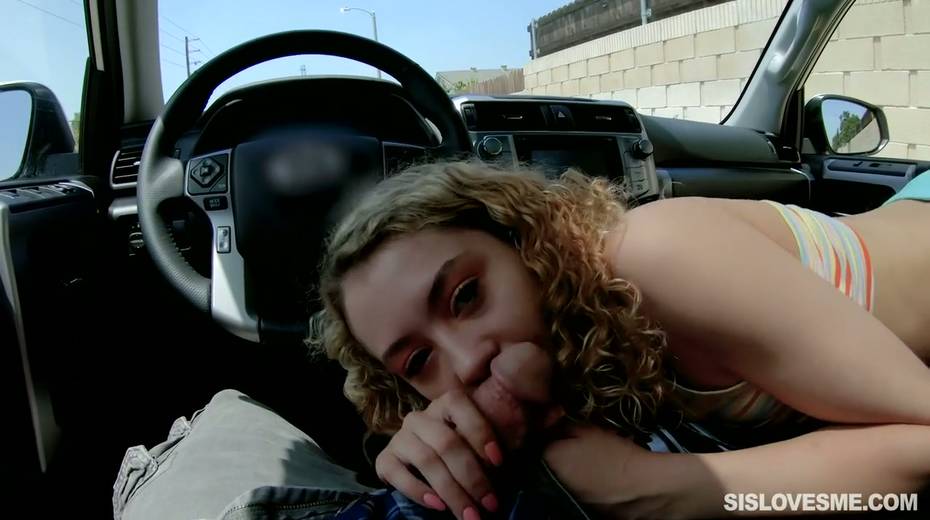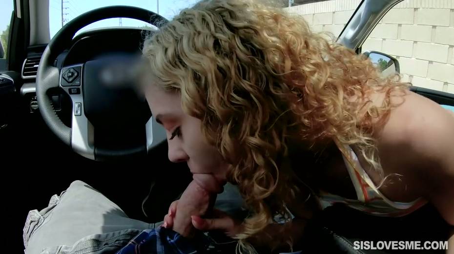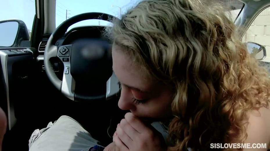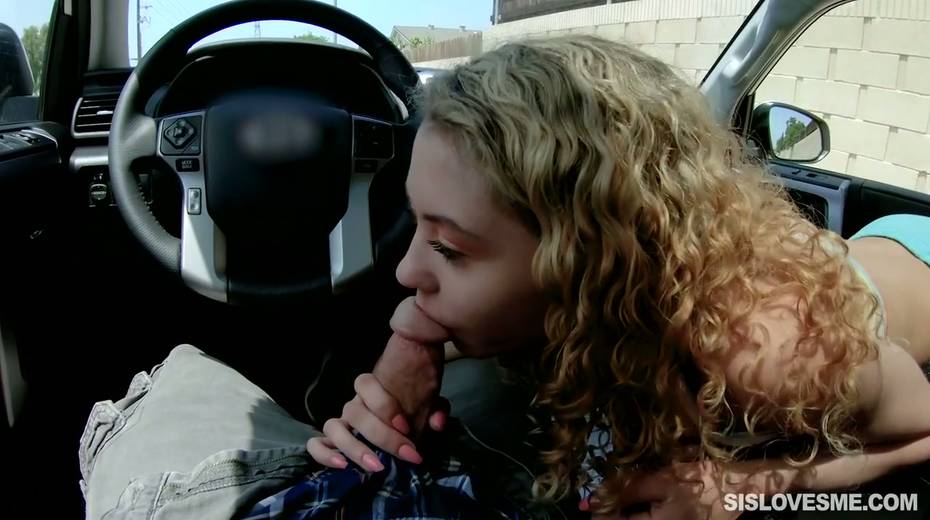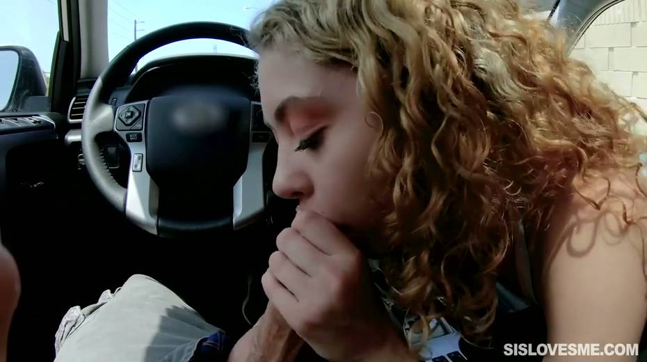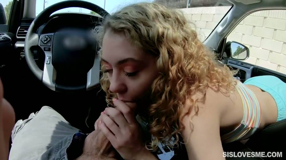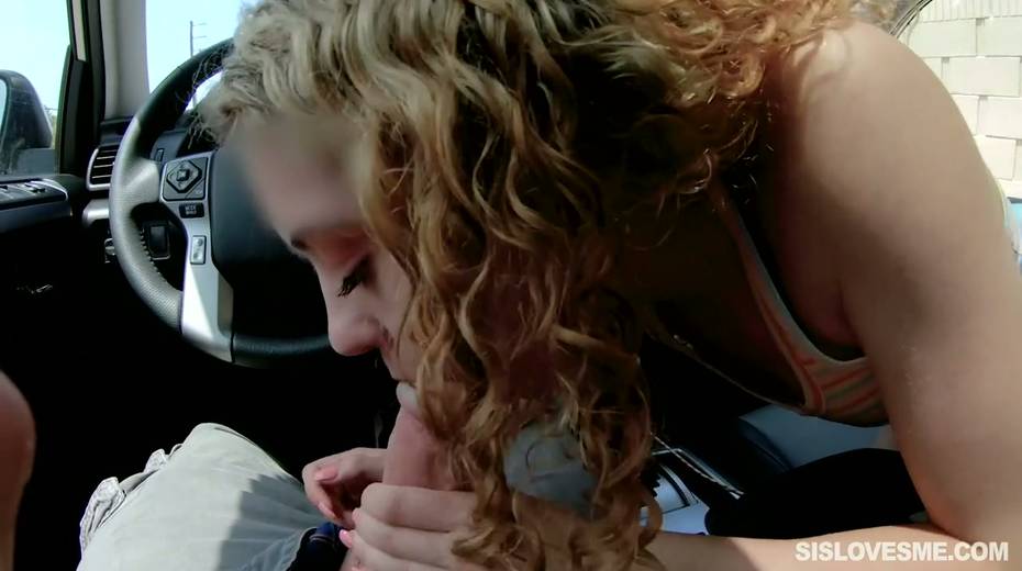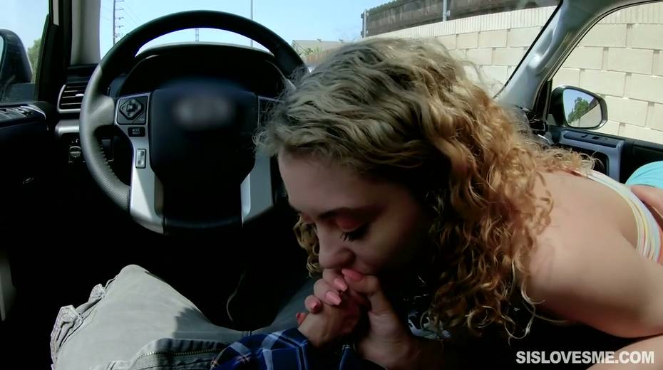 Nice curly teen Allie Addison is blowing hard penis in the car and enjoys eating sperm