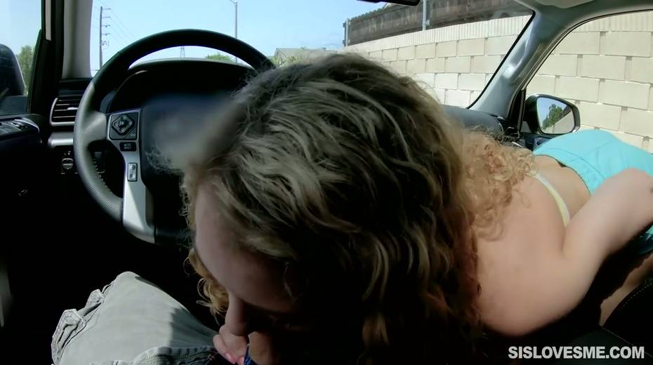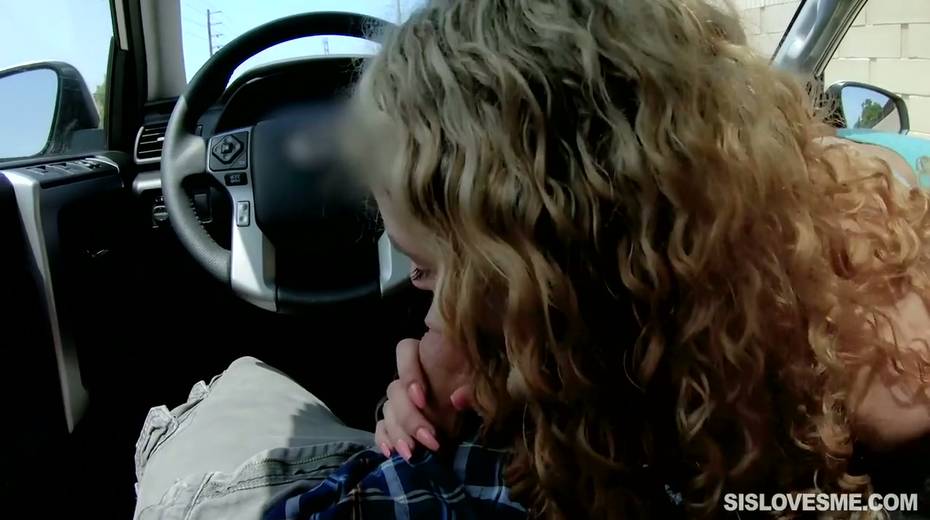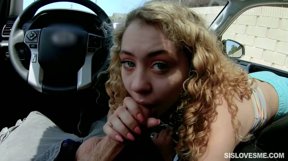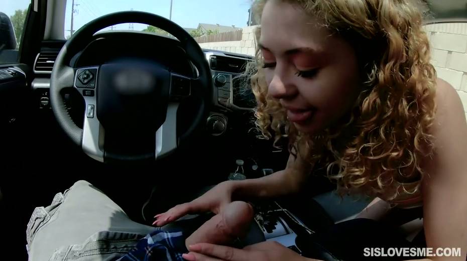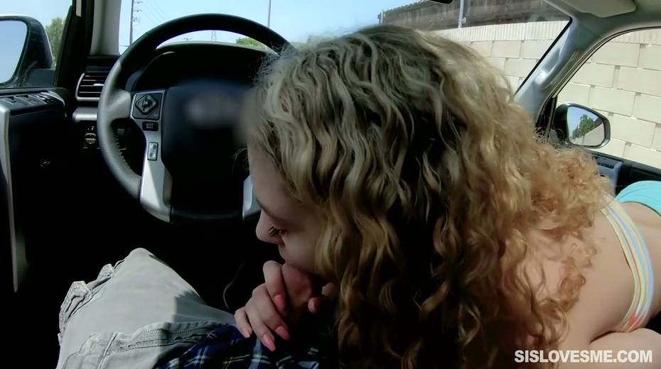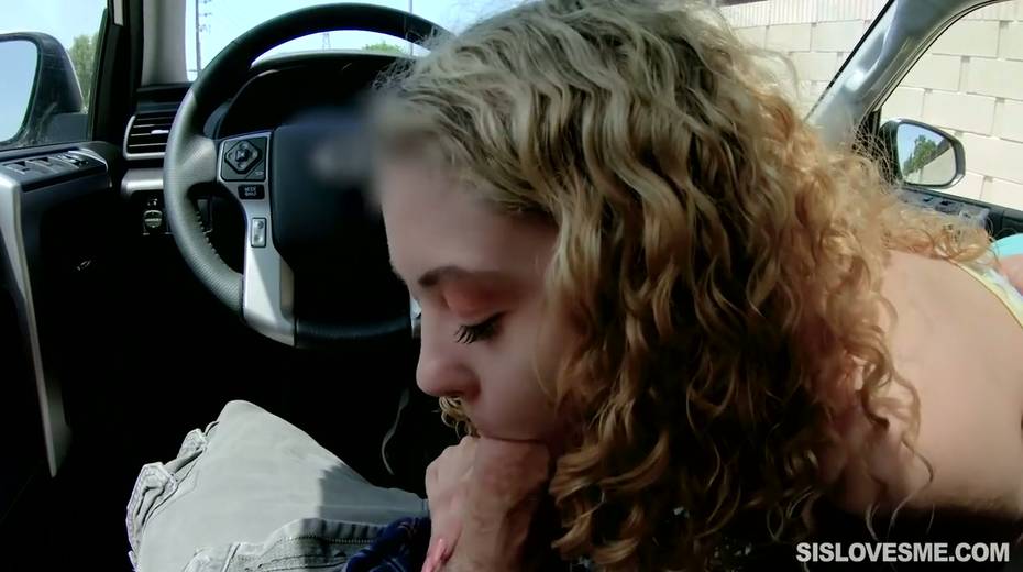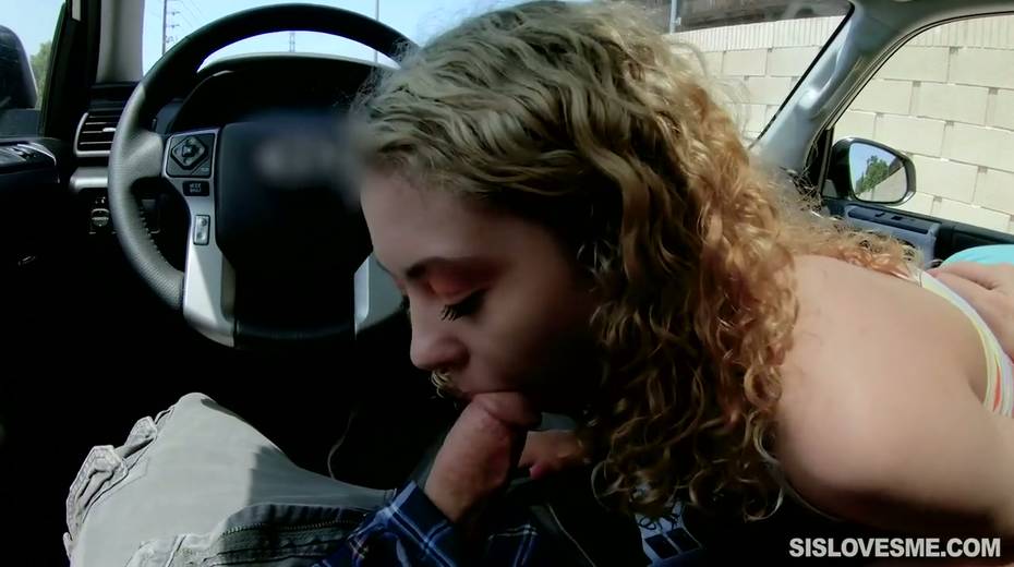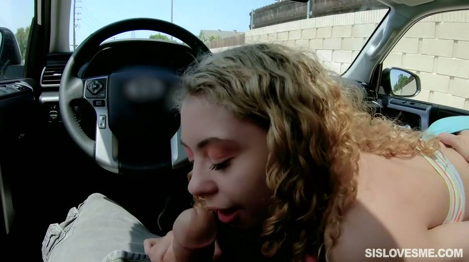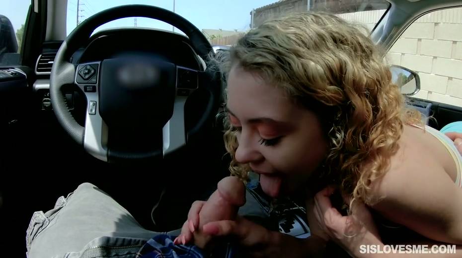 Nice curly teen Allie Addison is blowing hard penis in the car and enjoys eating sperm