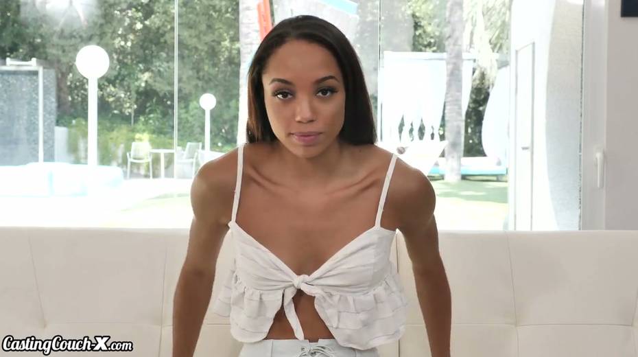 Ebony chick Alexis Tae gives a blowjob and rimjob and gets her pussy nailed