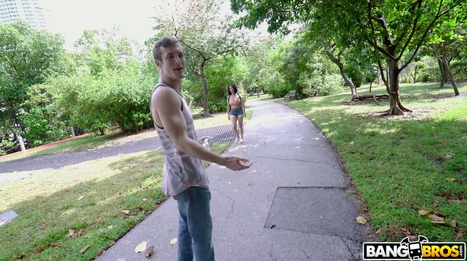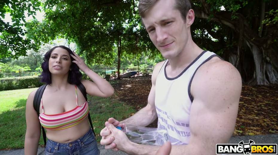 Ample breasted Latin milf Nina Lopez gives a blowjob outdoor and gets laid indoor