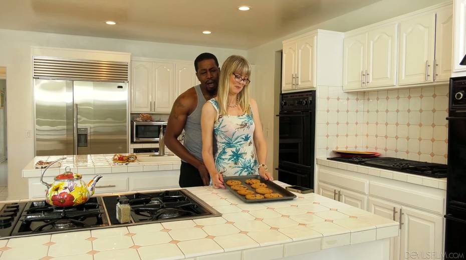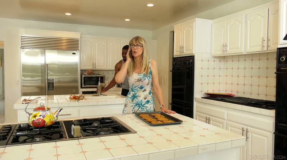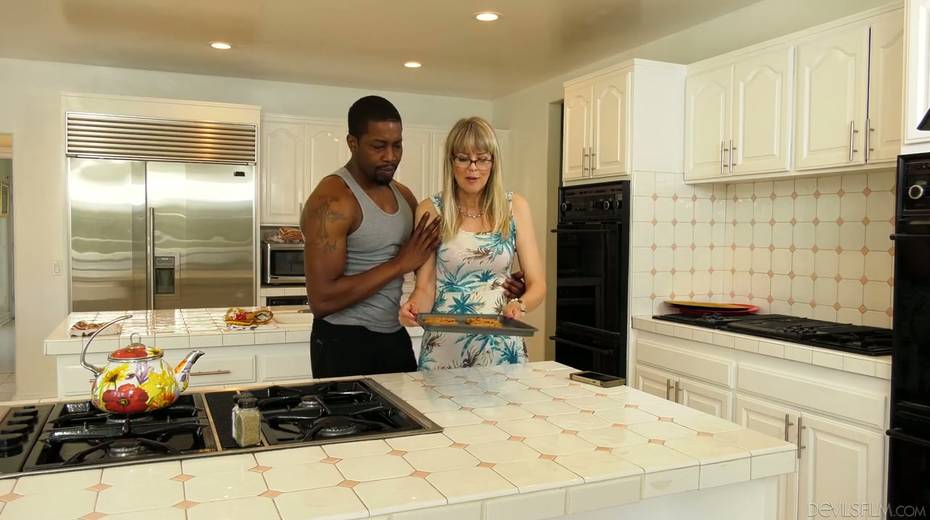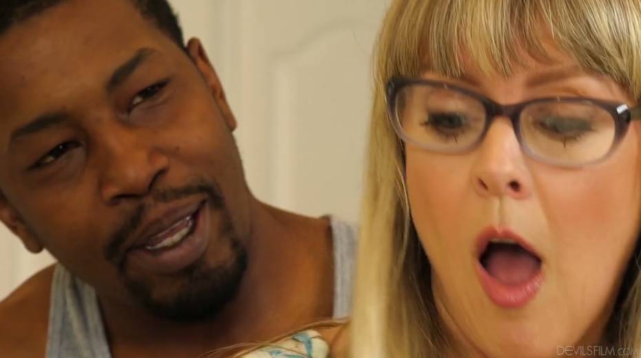 Mature blonde Jamie Foster is cheating on her husband with his handsome black son