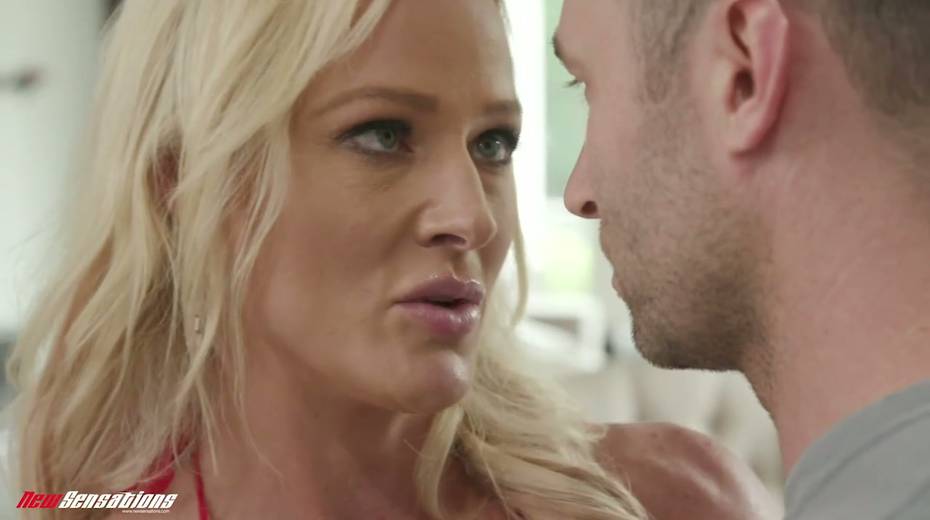 Eye-catching blond milf Sydney Hail gives her head and gets her slit nailed