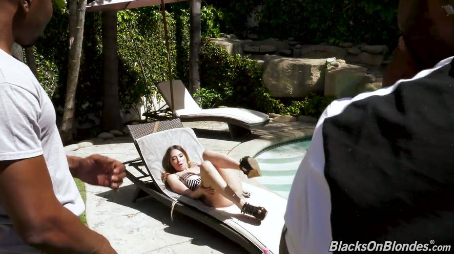 Two big black dicks invade pussy and mouth of hot blooded white bitch Quinn Wilde