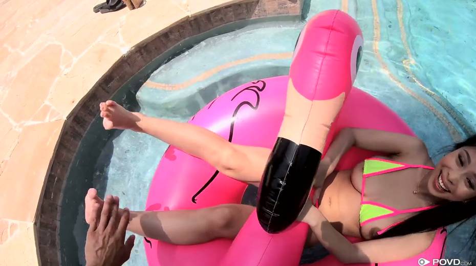Jaw dropping Asian bitch Jade Kush gives a wonderful titjob and rides a hard cock on pov camera