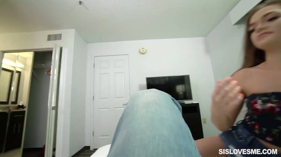 Naughty Sami White enjoys blowing big hard cock of her stepbrother