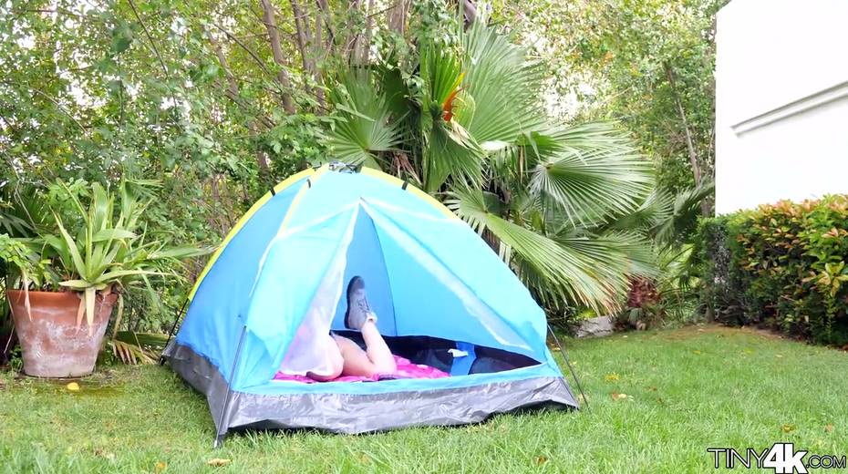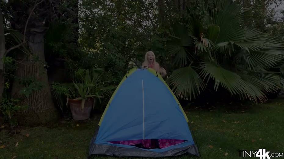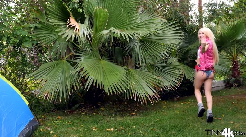 Tiny blond chick Kenzie Reeves is fucked by well endowed dude outdoor