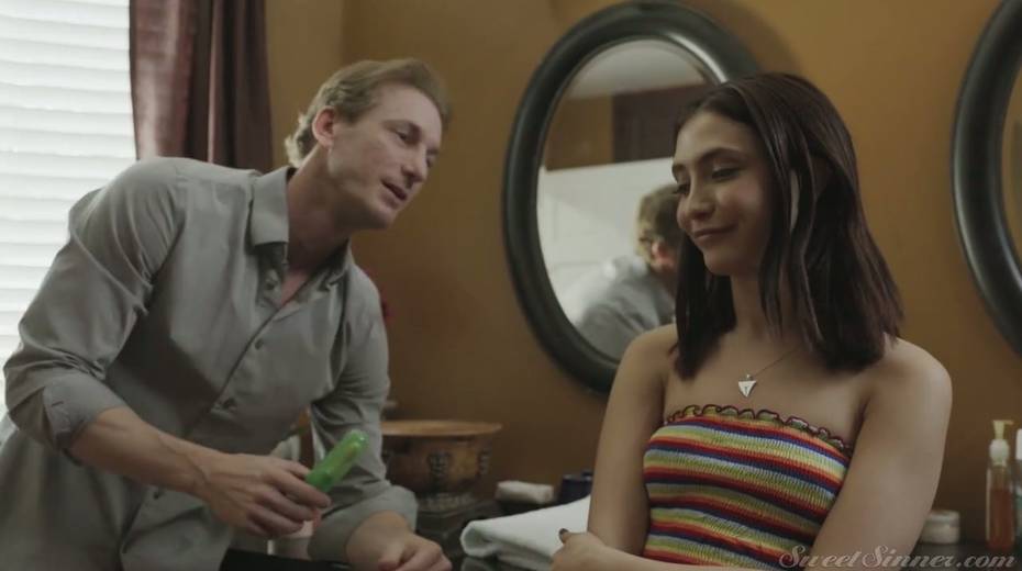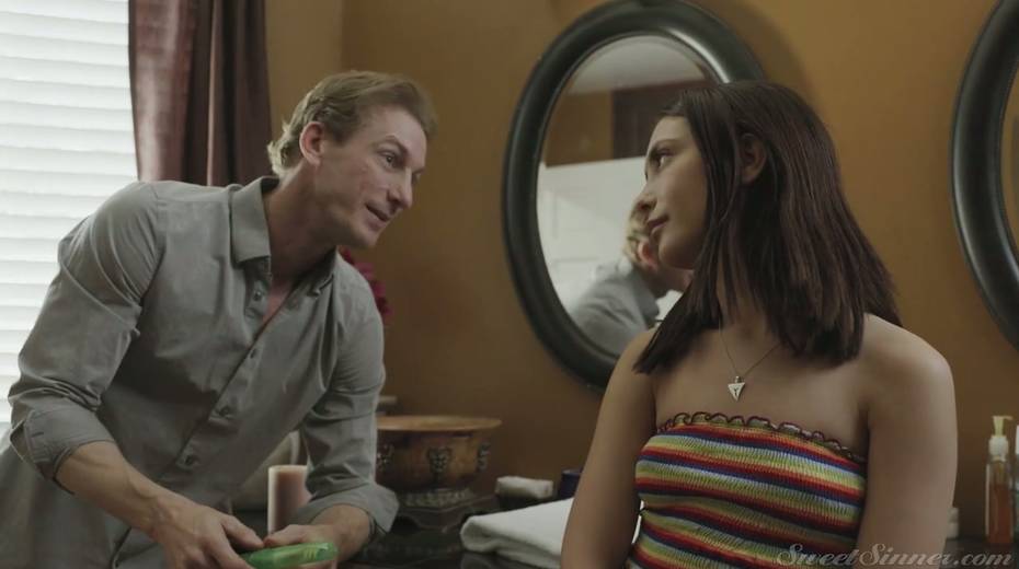 Skilled fucker Mark Wood fucks adorable teen with petite body Petra Blair