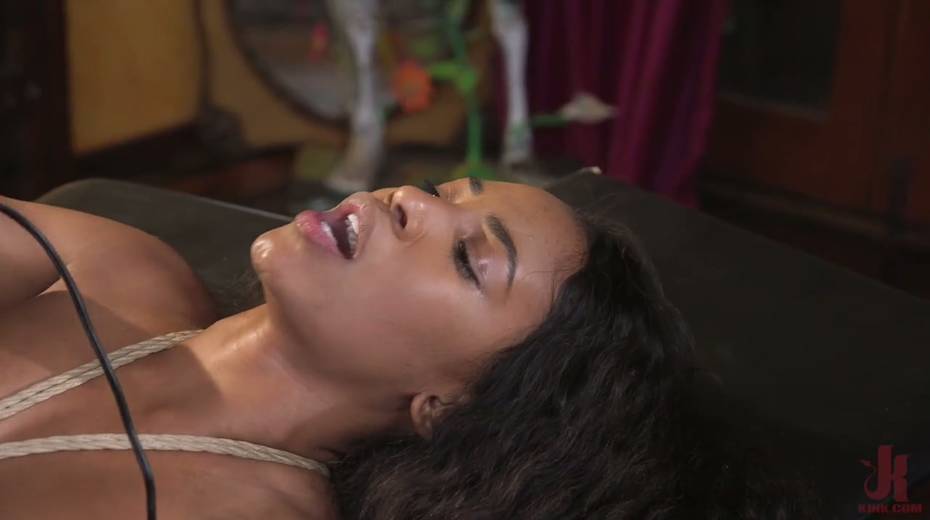 White tattooed dude enjoys toying and fucking Demi Sutra's black pussy