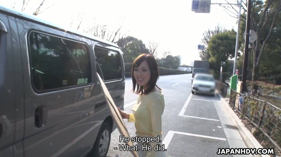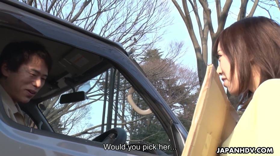 Whorish Asian chick Shiori Yamate gives a blowjob to one stranger driver