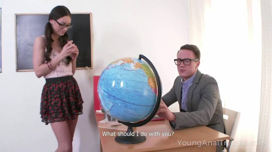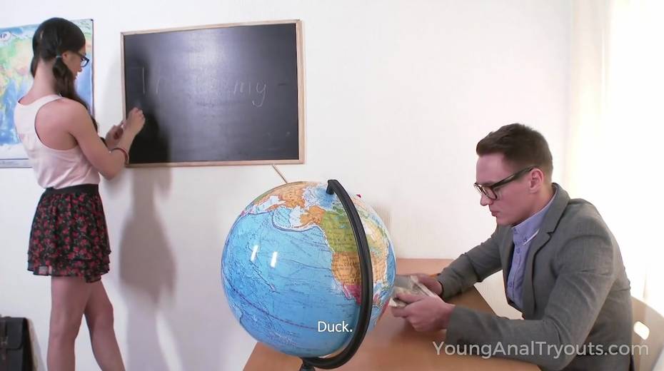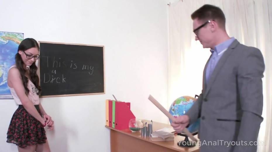 Nerdy sophomore student Vika swallows teacher's dick before rough anal sex