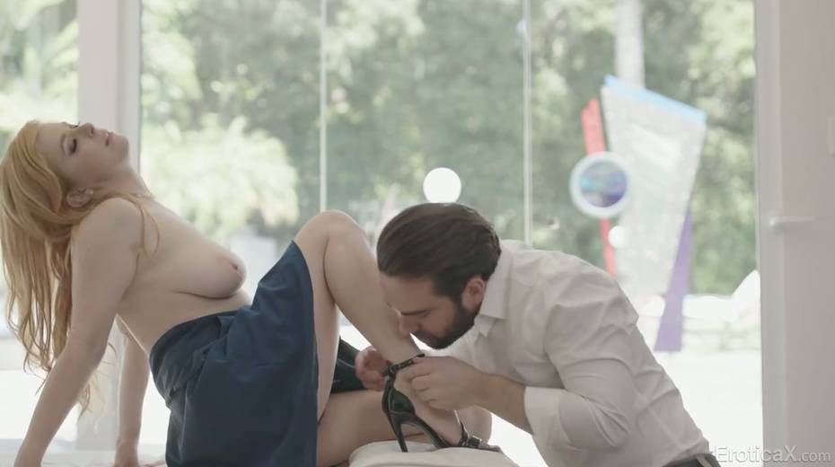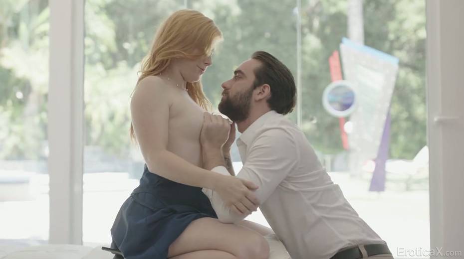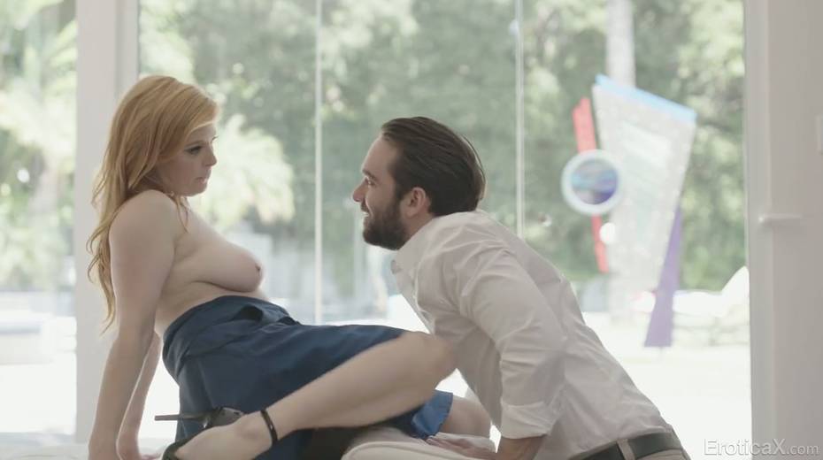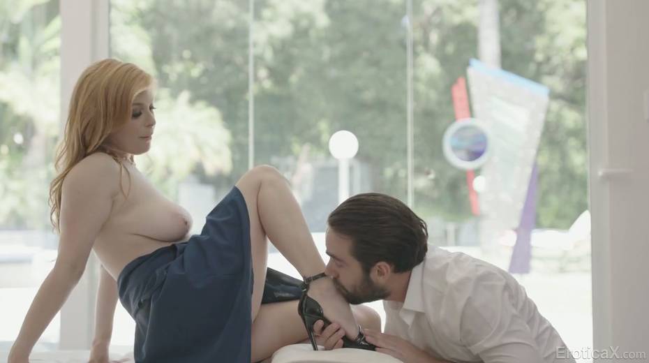 Tantalizing ginger babe with pale skin Penny Pax gives her head and gets fucked