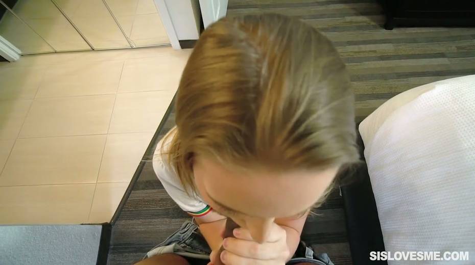 Blowjob expert Laney Grey gives a good blowjob to her stepbrother and spits cum