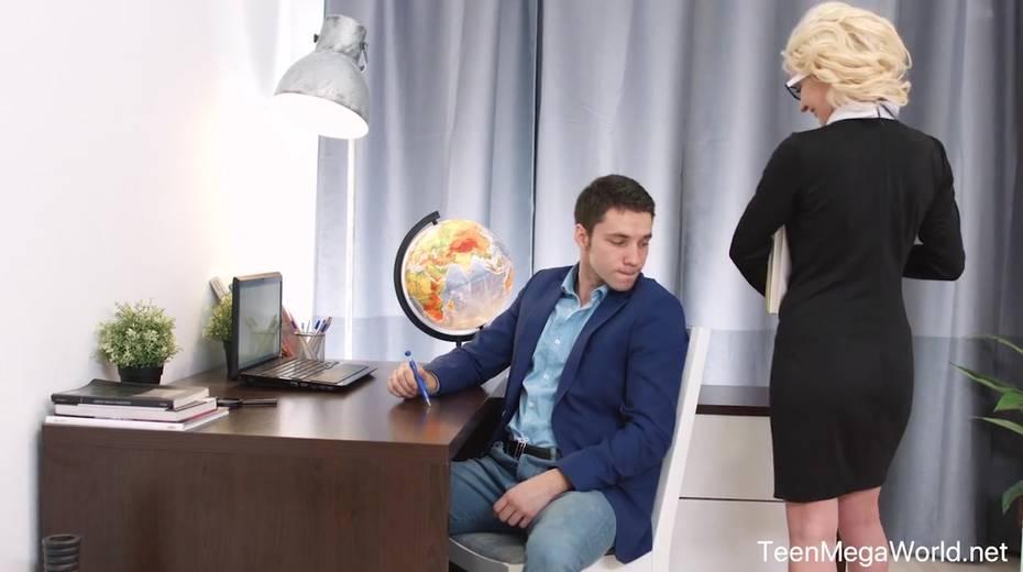 Student bangs sexy nerdy blond coed Anjela Vital and cums in her mouth