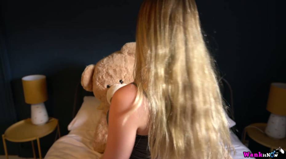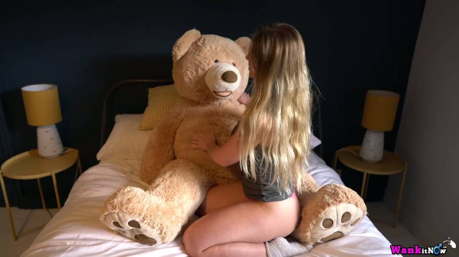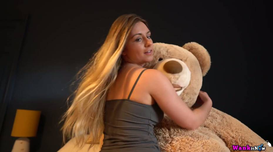 Libidinous beauty Sophie K is playing with her favorite big teddy bear