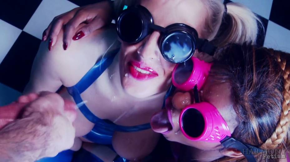 Kinky bitch Rebecca More is fucking two lesbian bitches in latex outfits