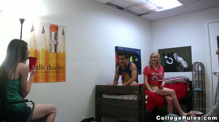 Hot college chicks arrange dirty group sex with several hot blooded guys