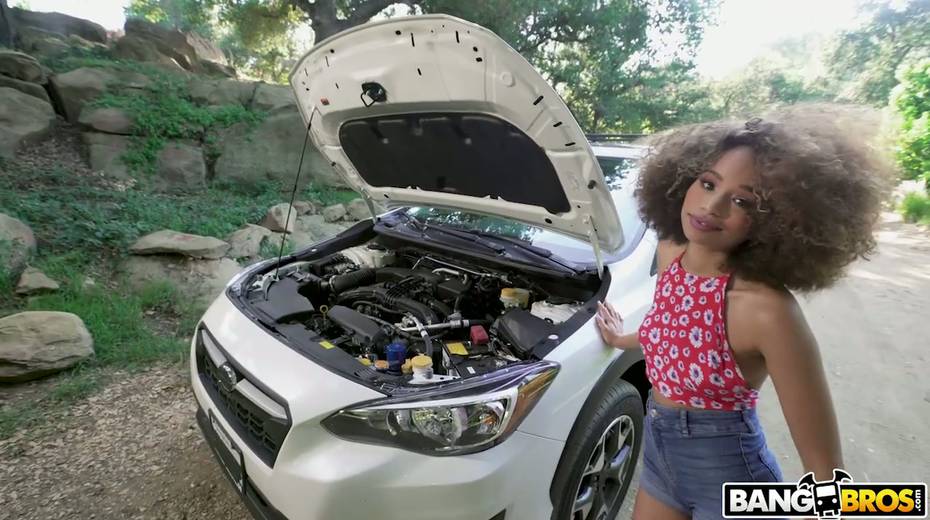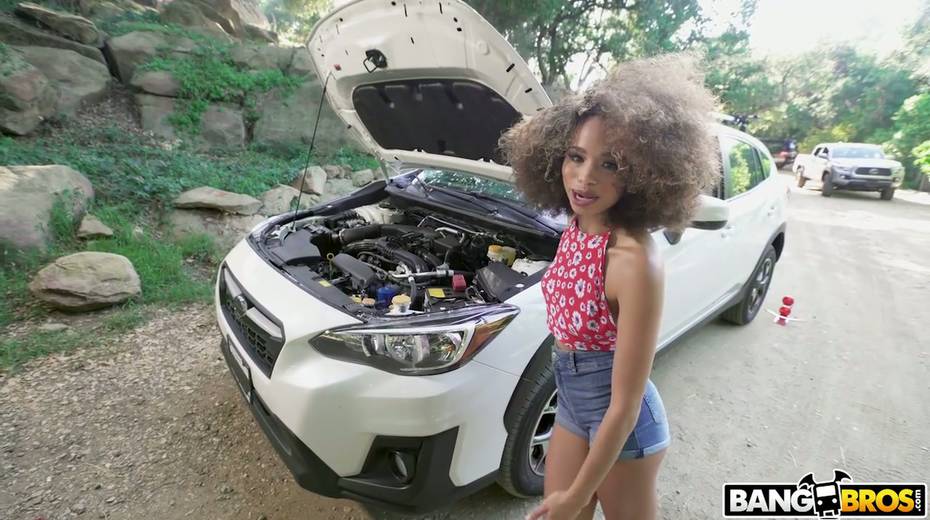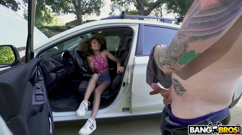 Slim black chick Cecilia Lion is fucked by well endowed white stranger by the car