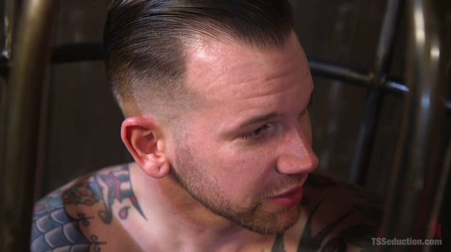 Nasty tranny TS Foxxy fucks anus and deep throat of one bisexual guy