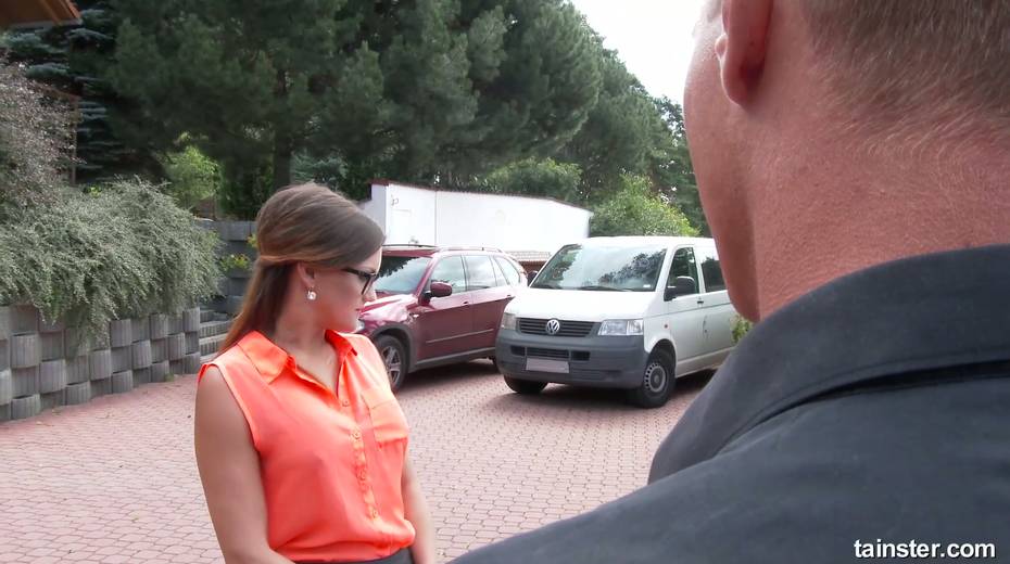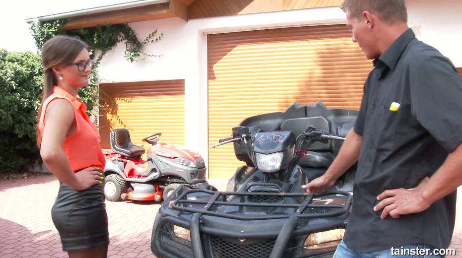 nasty chick in short skirt and stockings Barbara Bieber rides a big dick outdoor