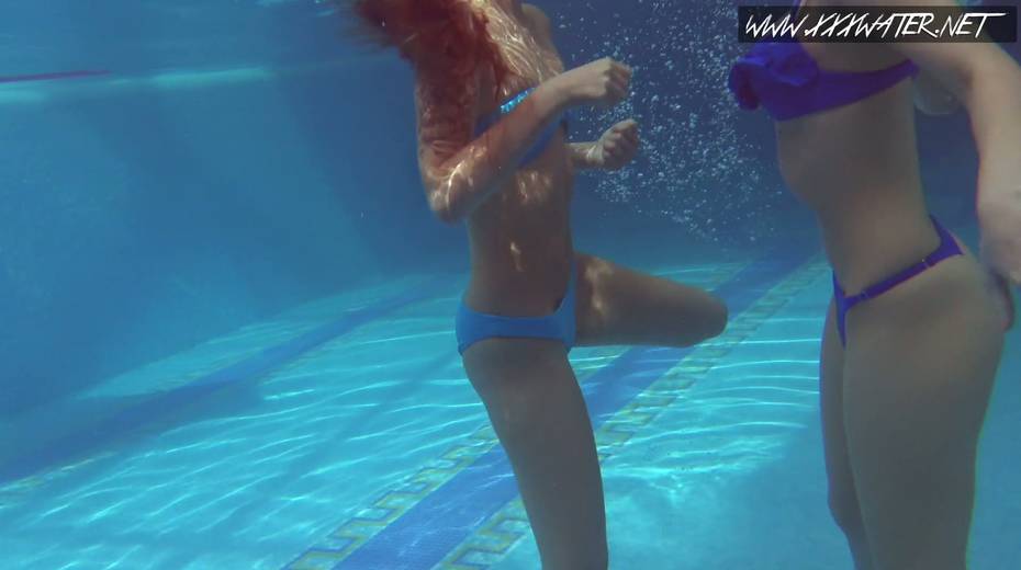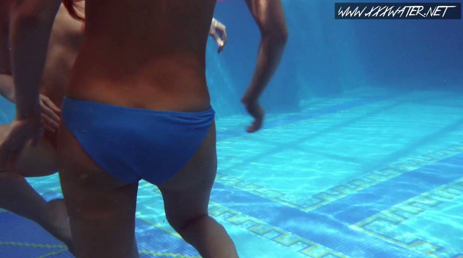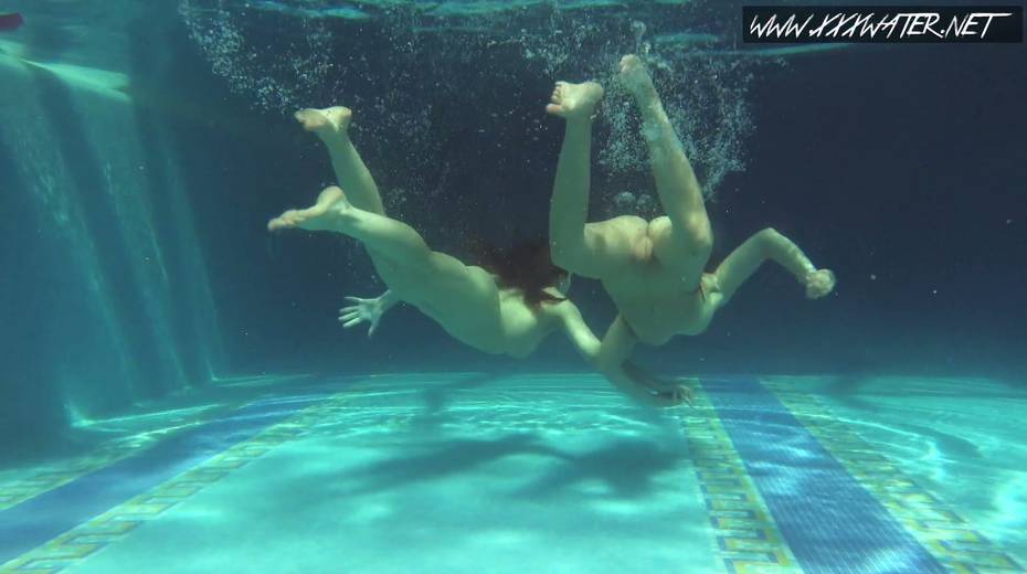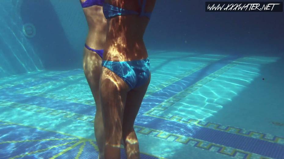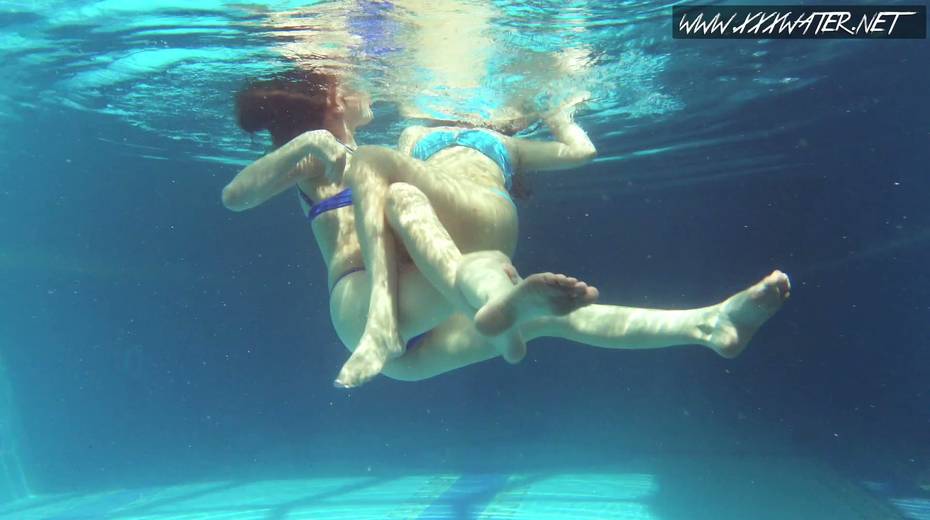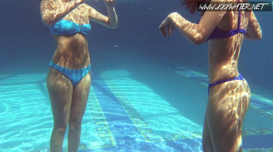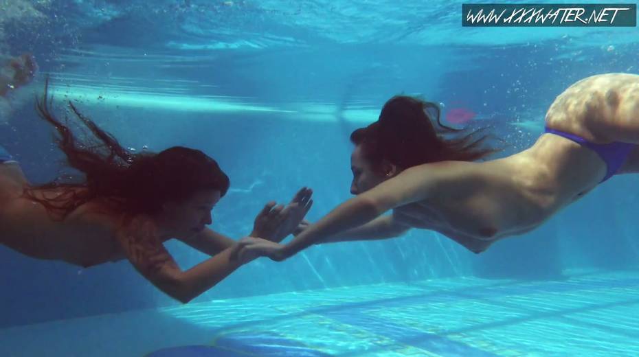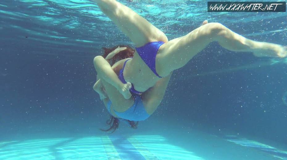 Russian swimmer Lina Mercury and her girlfriend show underwater striptease