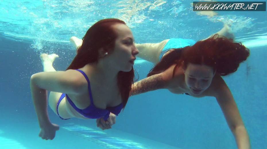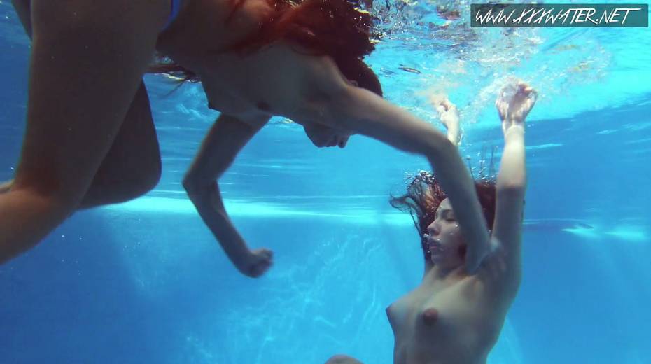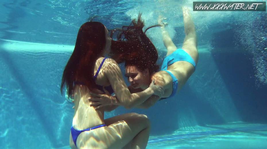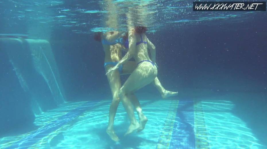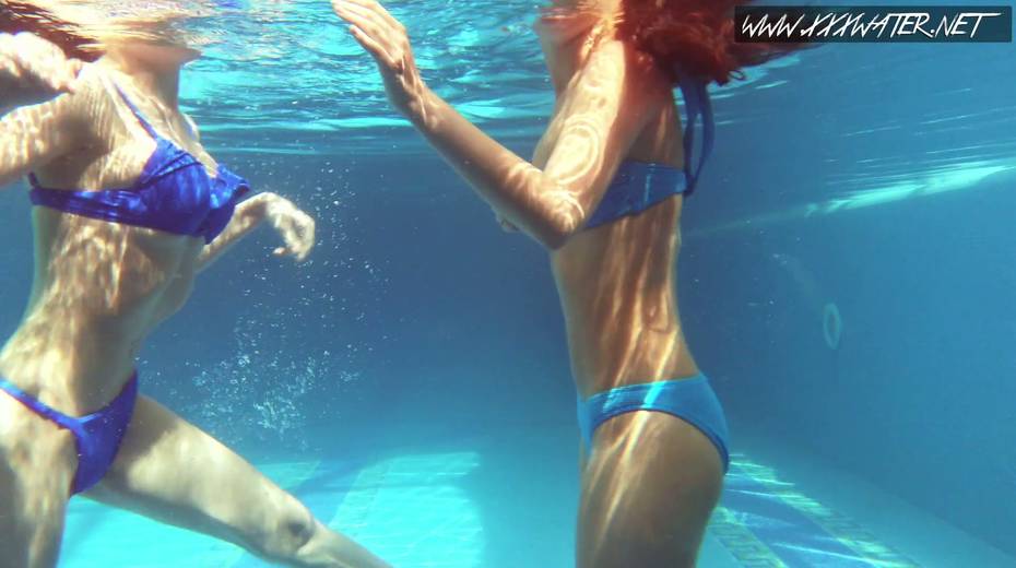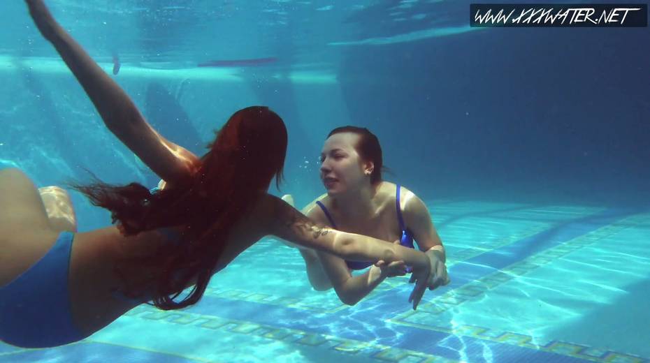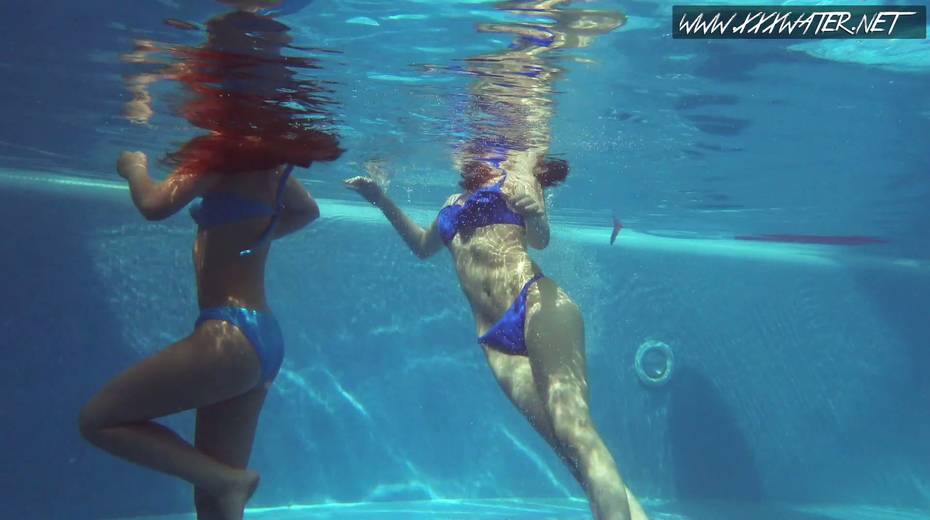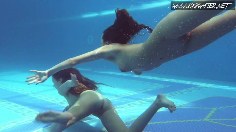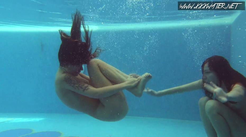 Russian swimmer Lina Mercury and her girlfriend show underwater striptease