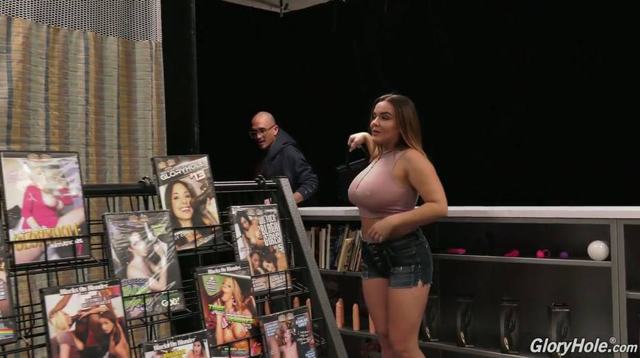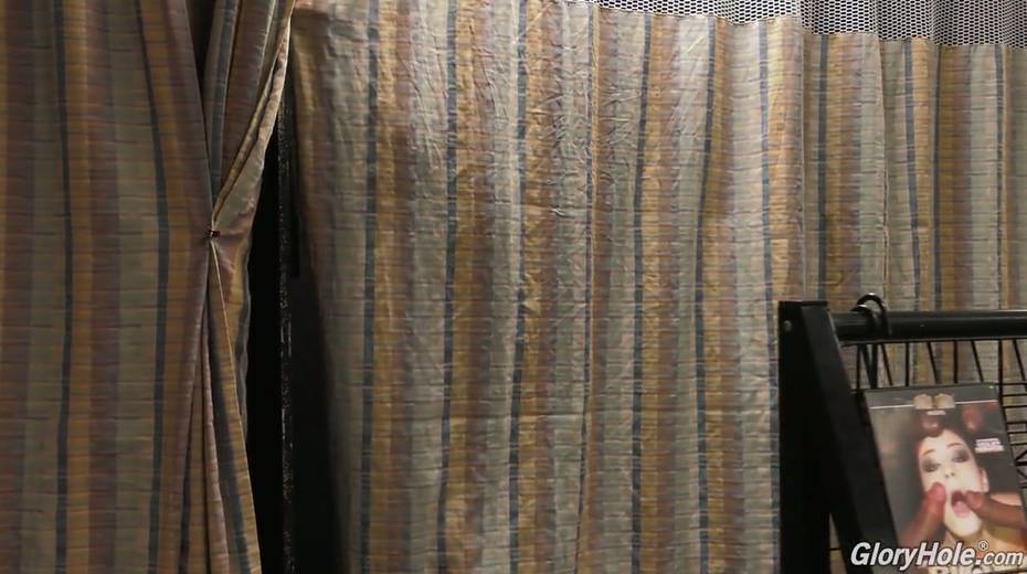 French temptress Natasha Nice gives a blowjob and titjob in the glory hole room