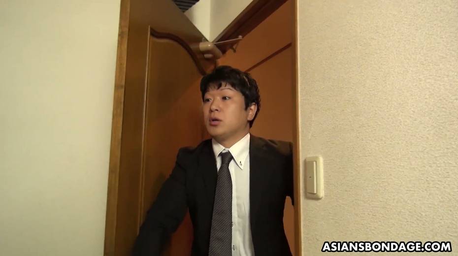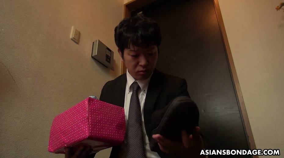 Submissive Asian chick Yui Shiina gives a blowjob and spits sperm in hands