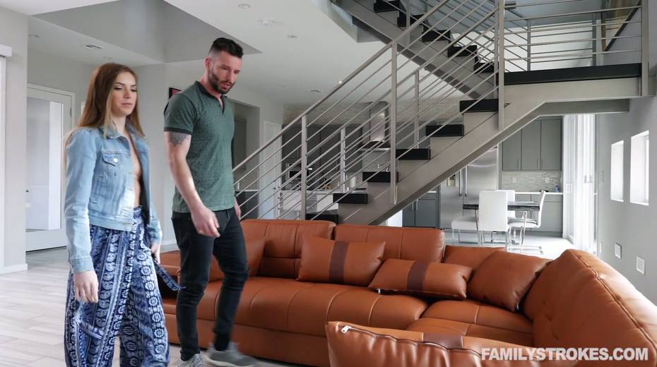 Slutty stepsister Summer Brooks shows yummy pussy upskirt and gives a great blowjob