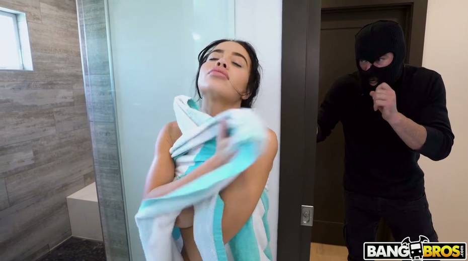 Robber in mask can't resist fucking jaw dropping busty brunette Victoria June