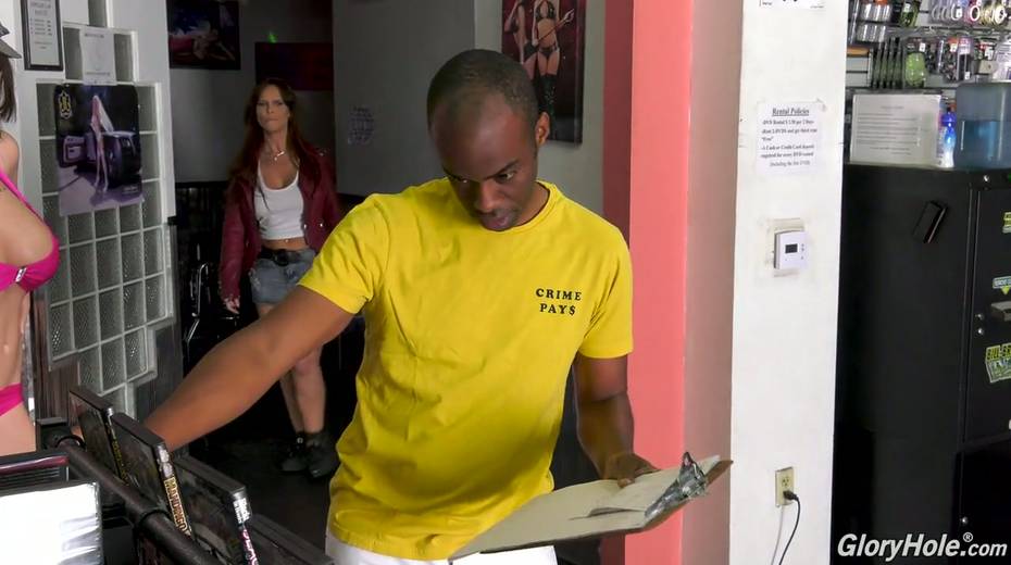 Vulgar milf with massive tits Syren Demer goes wild in the glory hole room