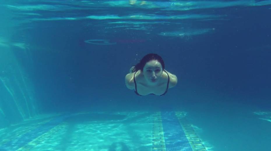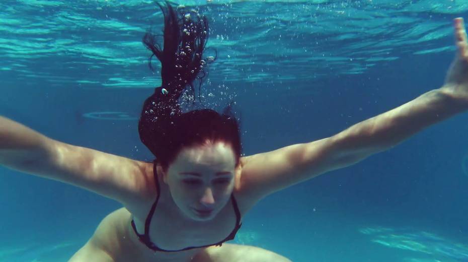Russian swimmer Kittina Clairette shows erotic tricks under the water