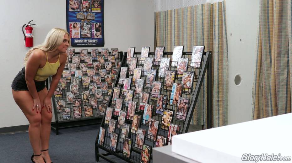 PAWG blonde Rharri Rhound swallows big black dick sticking out of the glory hole