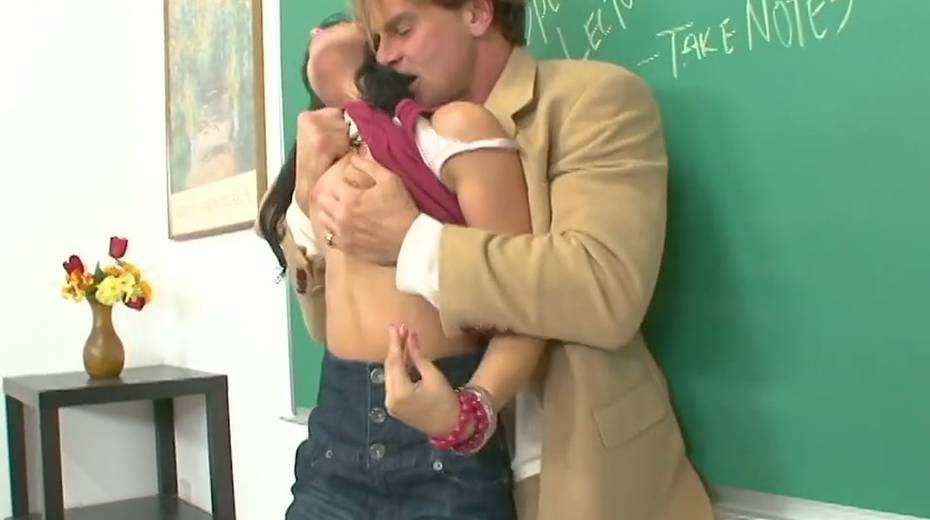 Slutty sophomore student Sadie West gets intimate with strict teacher Evan Stone