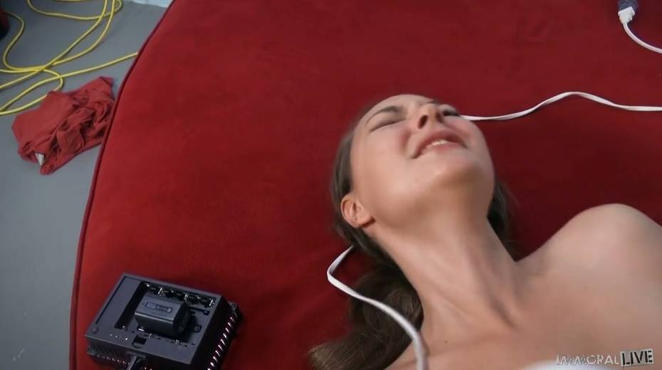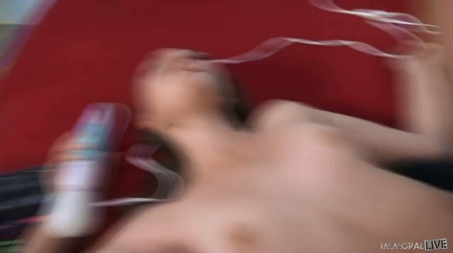 Insatiable girl Sabrina Rey is playing with vibrator while dude fucks her pinkish hole