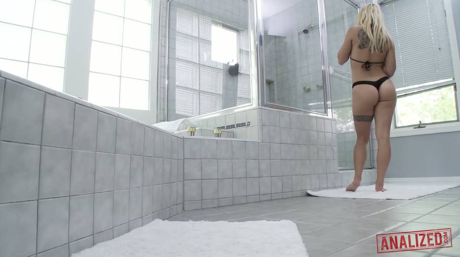 Slutty girlfriend Cameron Canada gets her anus fucked and gets facial in the shower