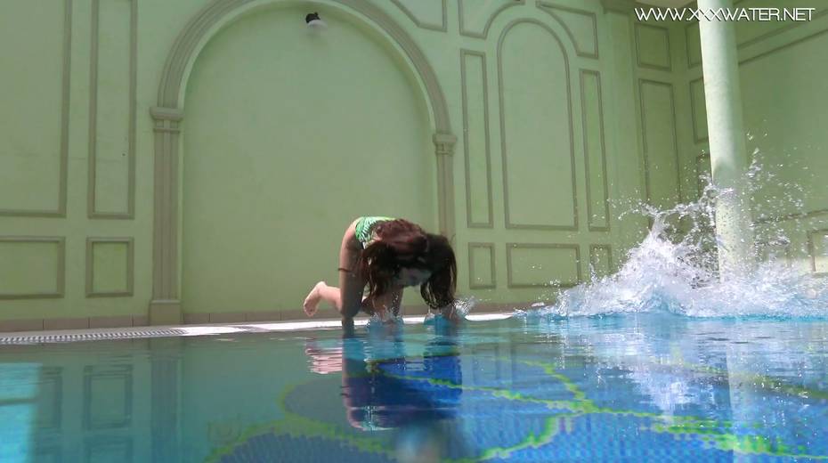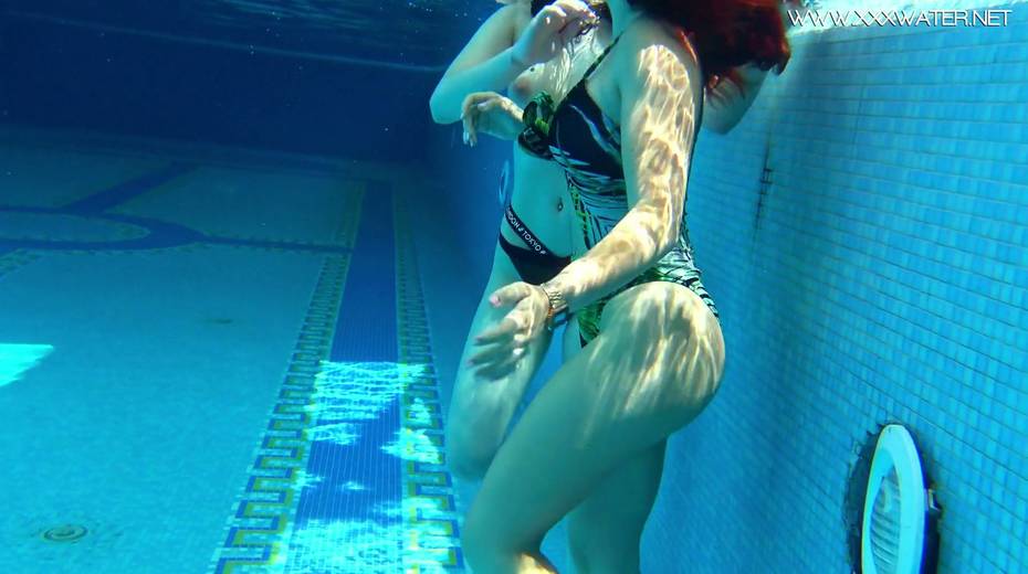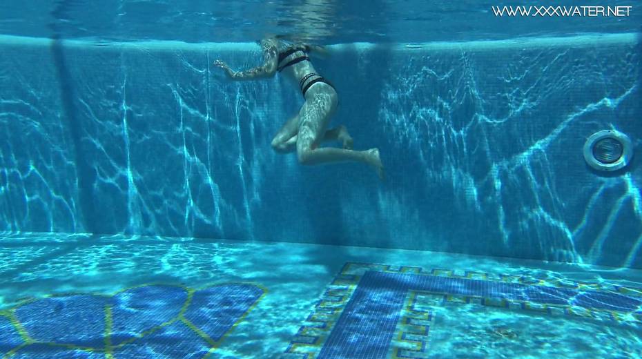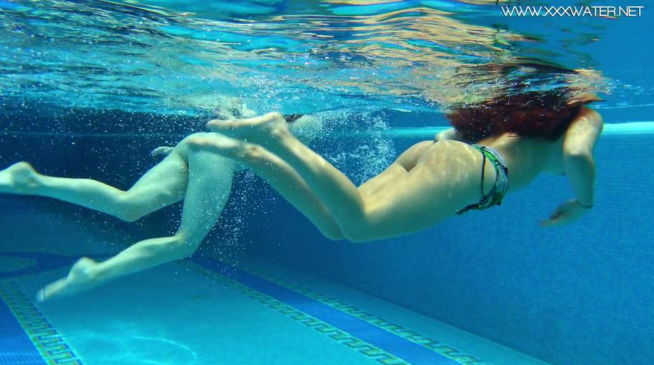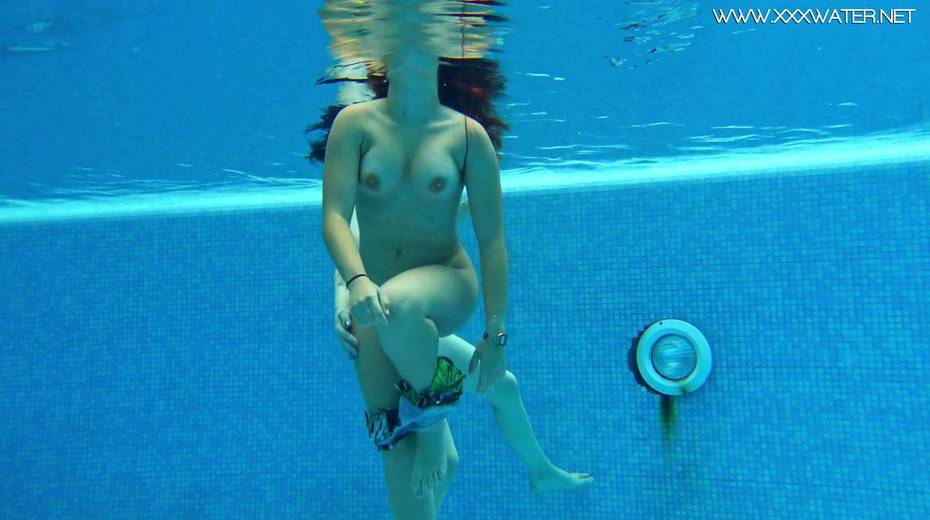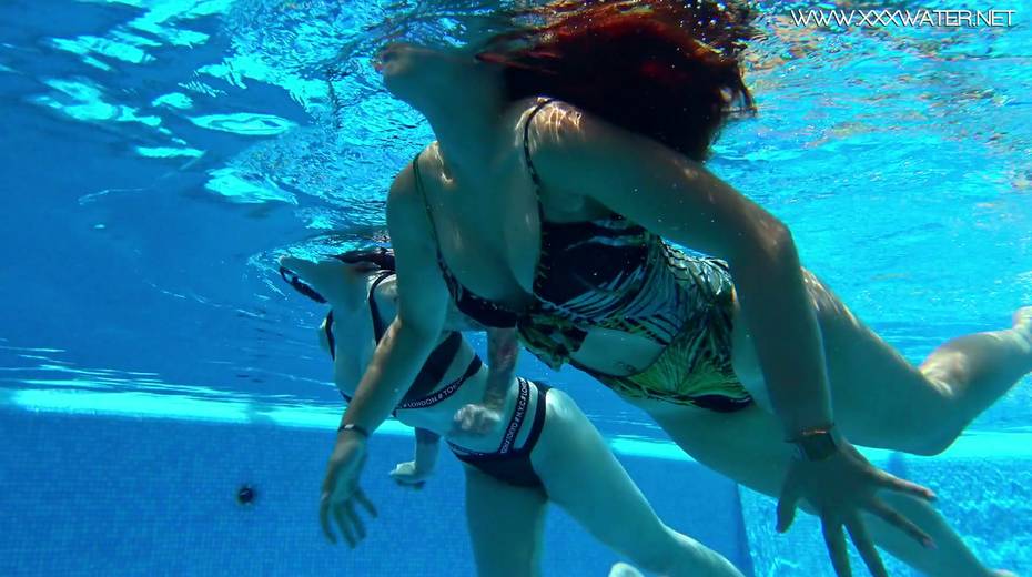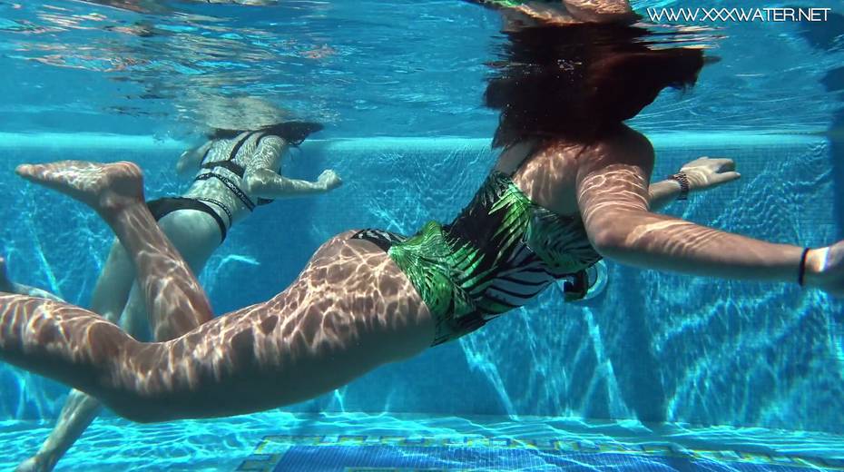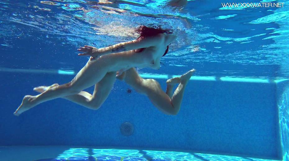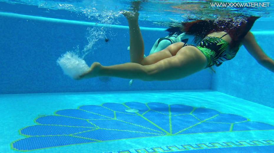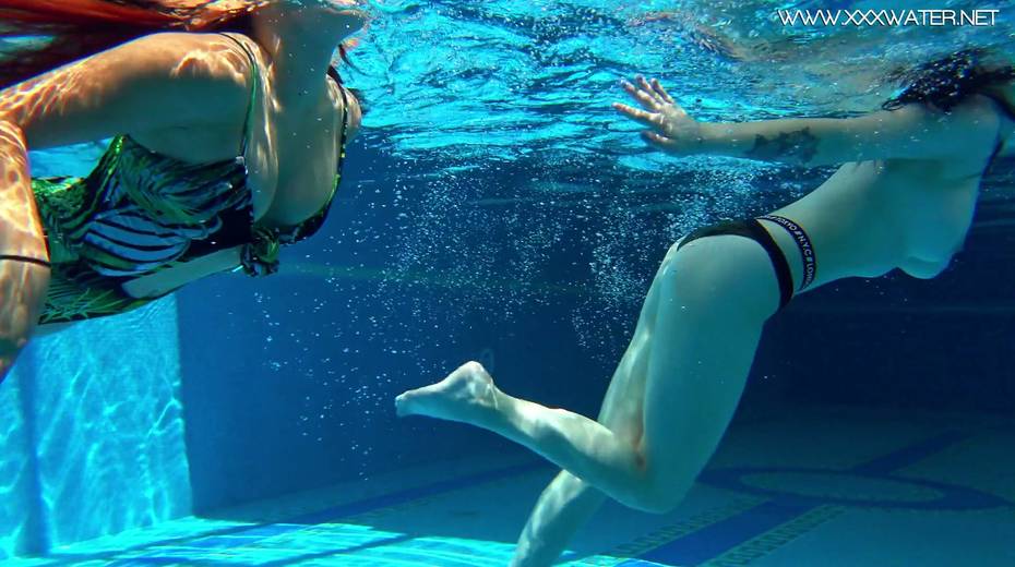 Two topless swimming babes Diana Rius and Sheril Blossom show tricks under the water