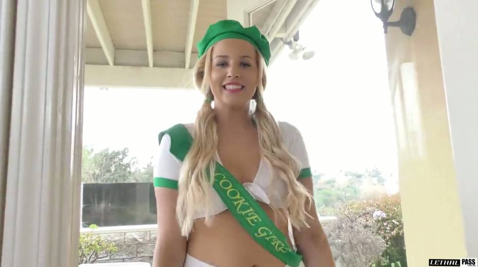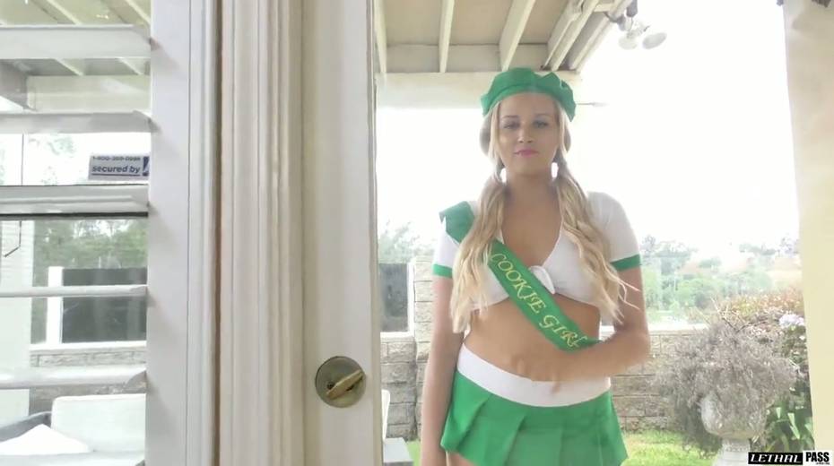 Charming cookie girl Sophia Lux gives her head and gets her muff slammed