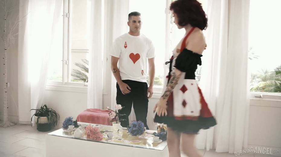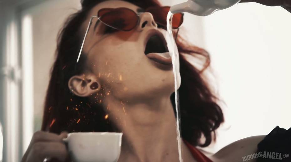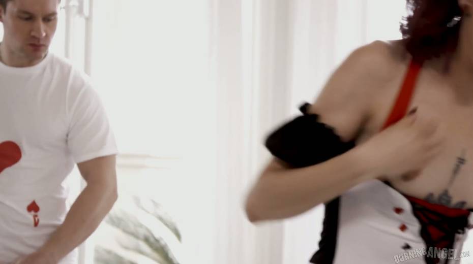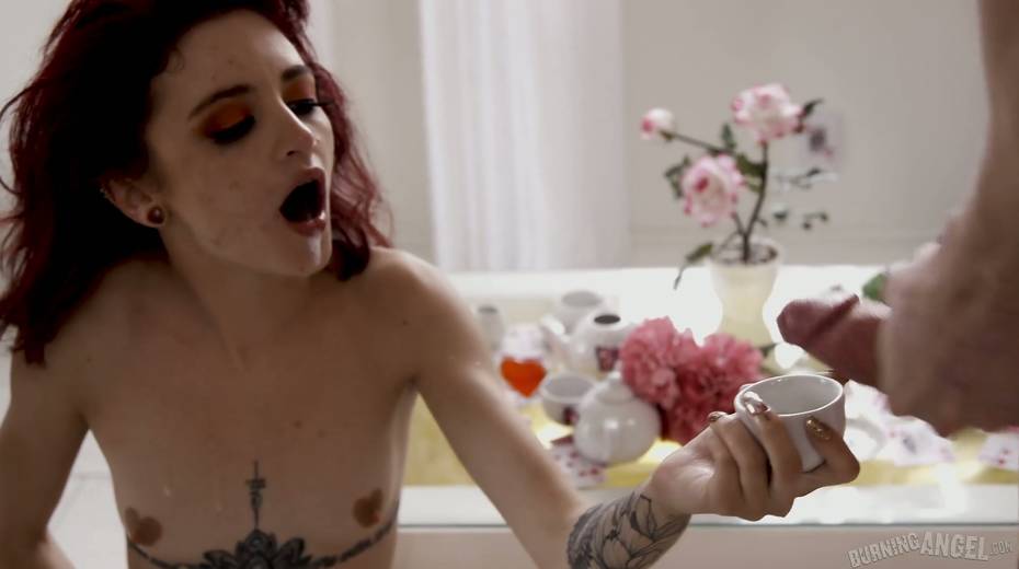 Compete whore Lola Fae shows talents of her deep throat in blowbang scene