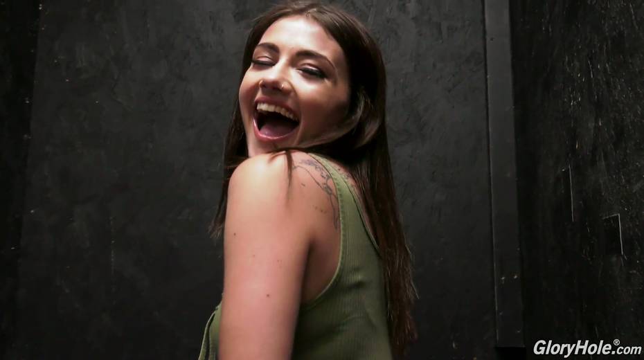 White chick Adria Rae is craving for big black dick sticking out of the wall