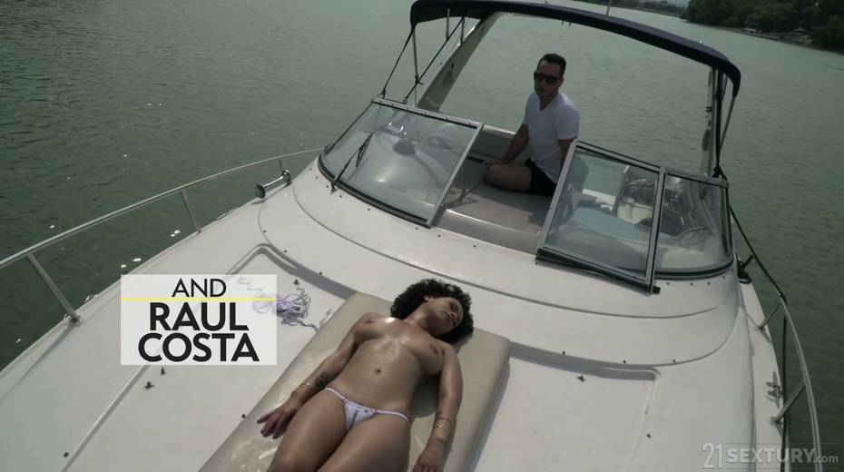 Slutty Russian babe Stacy Bloom gives titjob and gets her anus holed on a yacht