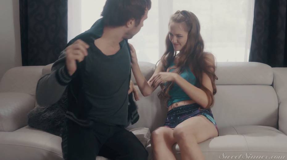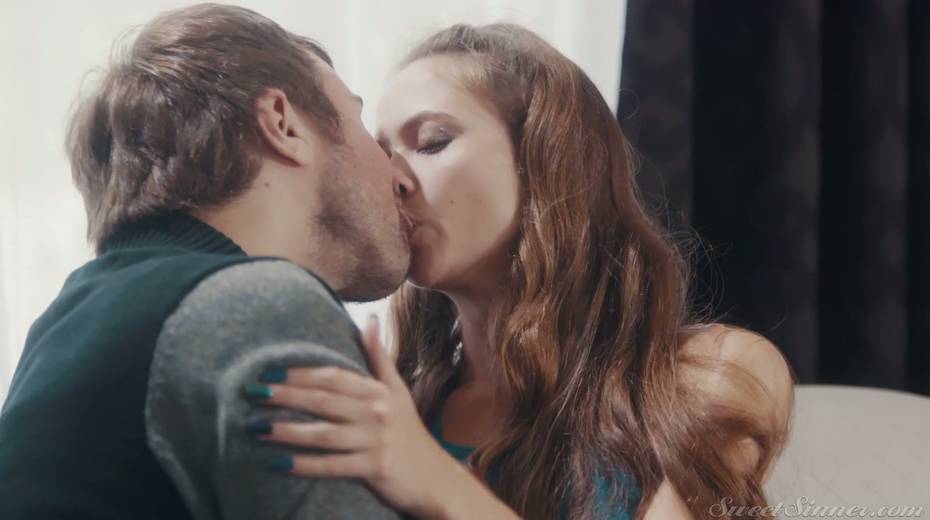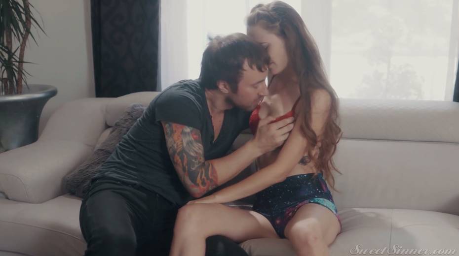 Luscious red haired hottie Samantha Hayes gives a blowjob and gets her muff nailed